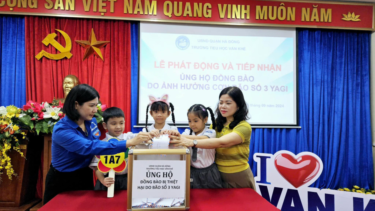 Tính từ ngày 7/9/2024 khi cơn siêu bão Yagi đổ bộ vào miền Bắc nước ta đến nay đã hơn 2 tuần trôi qua nhưng tất cả những đau thương, mất mát mà bão Yagi đem lại vẫn còn đó. Đây cũng là thời điểm mà toàn thể người dân Việt Nam thể hiện và nâng cao tinh thần tương thân tương ái hơn bao giờ hết. Hưởng ứng lời kêu gọi của Uỷ ban Mặt trận Tổ Quốc quận Hà Đông, đồng thời nhằm giáo dục học sinh về truyền thống "Lá lành đùm lá rách" Liên đội Tiểu học Văn Khê đã phát động quyên góp ủng hộ đồng bào bão lũ với tổng số tiền 167.335.000 đồng (Một trăm sáu mươi bảy triệu ba trăm ba mươi lăm nghìn đồng) Nhà trường đã kịp thời chuyển toàn bộ số tiền quyên góp được về Uỷ Ban MTTQ quận Hà Đông, Phòng GDĐT Quận Hà Đông, Quận đoàn Hà Đông, Uỷ Ban MTTQ phường La Khê nhằm gửi tới đồng bào chịu thiệt hại do thiên tai. Thay mặt đồng bào bị ảnh hưởng thiên tai do cơn bão số 3 gây ra, cô giáo Trần Thị Quyên - Bí thư Chi bộ - Hiệu trưởng nhà trường xin gửi tới NHỮNG TẤM LÒNG VÀNG của Quý phụ huynh và học sinh lời cảm tạ sâu sắc nhất. Xin kính chúc các thầy giáo, cô giáo, các bậc PH, các em học sinh Sức khoẻ - Bình an - Hạnh phúc! Dưới đây là bảng sao kê chi tiết và một số hình ảnh của thầy và trò mời Quý vị vào xem: