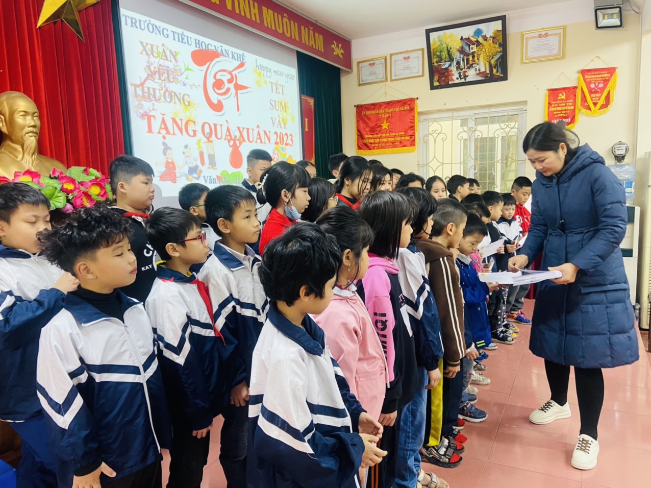 Sáng ngày 16/01/2023, Nhân dịp đón Tết Nguyên đán Quý Mão, Ban giám hiệu Trường Tiểu học Văn Khê đã tổ chức tặng quà Tết cho các em học sinh có hoàn cảnh khó khăn đang học tập tại trường. Dịp này, nhà trường đã tặng 48 suất quà, mỗi suất 500 ngàn đồng cho học sinh có hoàn cảnh khó khăn với tổng trị giá 24 triệu đồng. Đây là sự sẻ chia của chính các em học sinh, giáo viên trong nhà trường tự nguyện đóng góp ủng hộ. Món quà tuy nhỏ nhưng là nguồn động viên tinh thần, hỗ trợ các em vượt qua khó khăn trong học tập và đón một cái Tết vui tươi, ấm áp hơn.