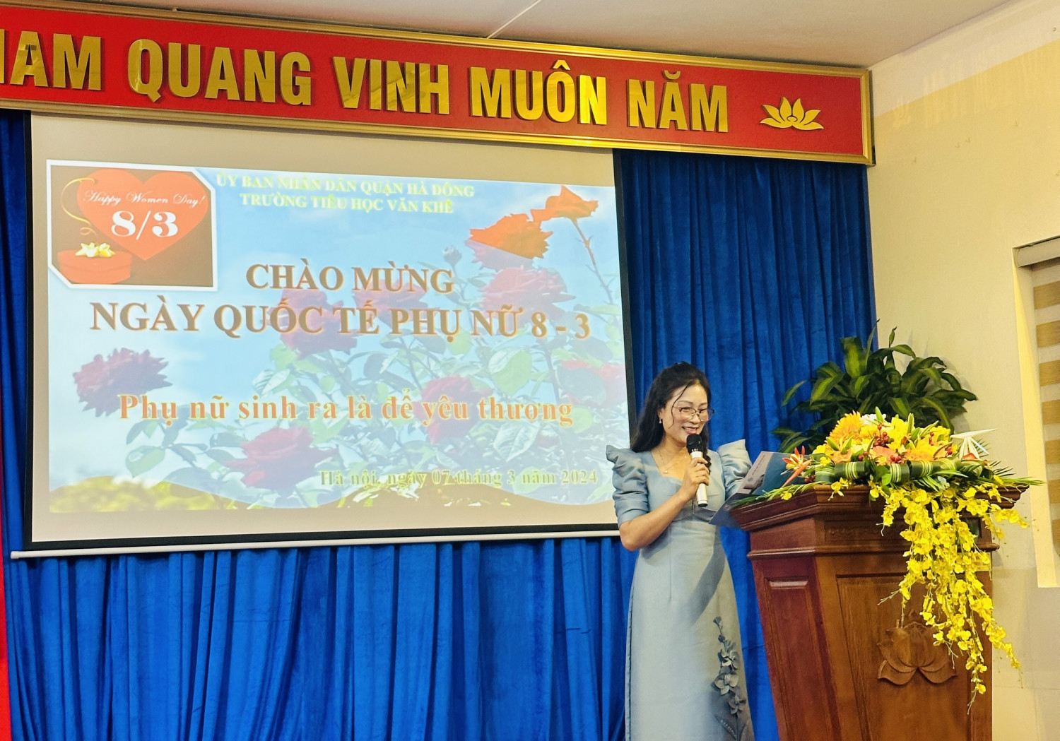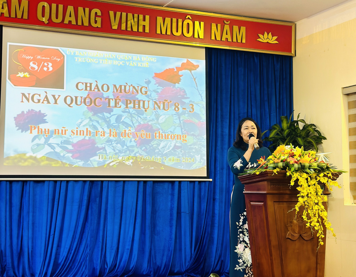 Trong không khí vui tươi phấn khởi của cả nước đón xuân Giáp Thìn chào mừng kỉ niệm 94 năm ngày thành lập Đảng cộng sản Việt Nam, kỉ niệm 114 năm ngày quốc tế phụ nữ (8/3/1910 - 8/3/2024). Được sự nhất trí của chi bộ, ban giám hiệu, ban chấp hành công đoàn. Chính quyền và công đoàn trường Tiểu học Văn Khê phối hợp tổ chức lễ kỉ niệm ngày quốc tế phụ nữ 8/3.