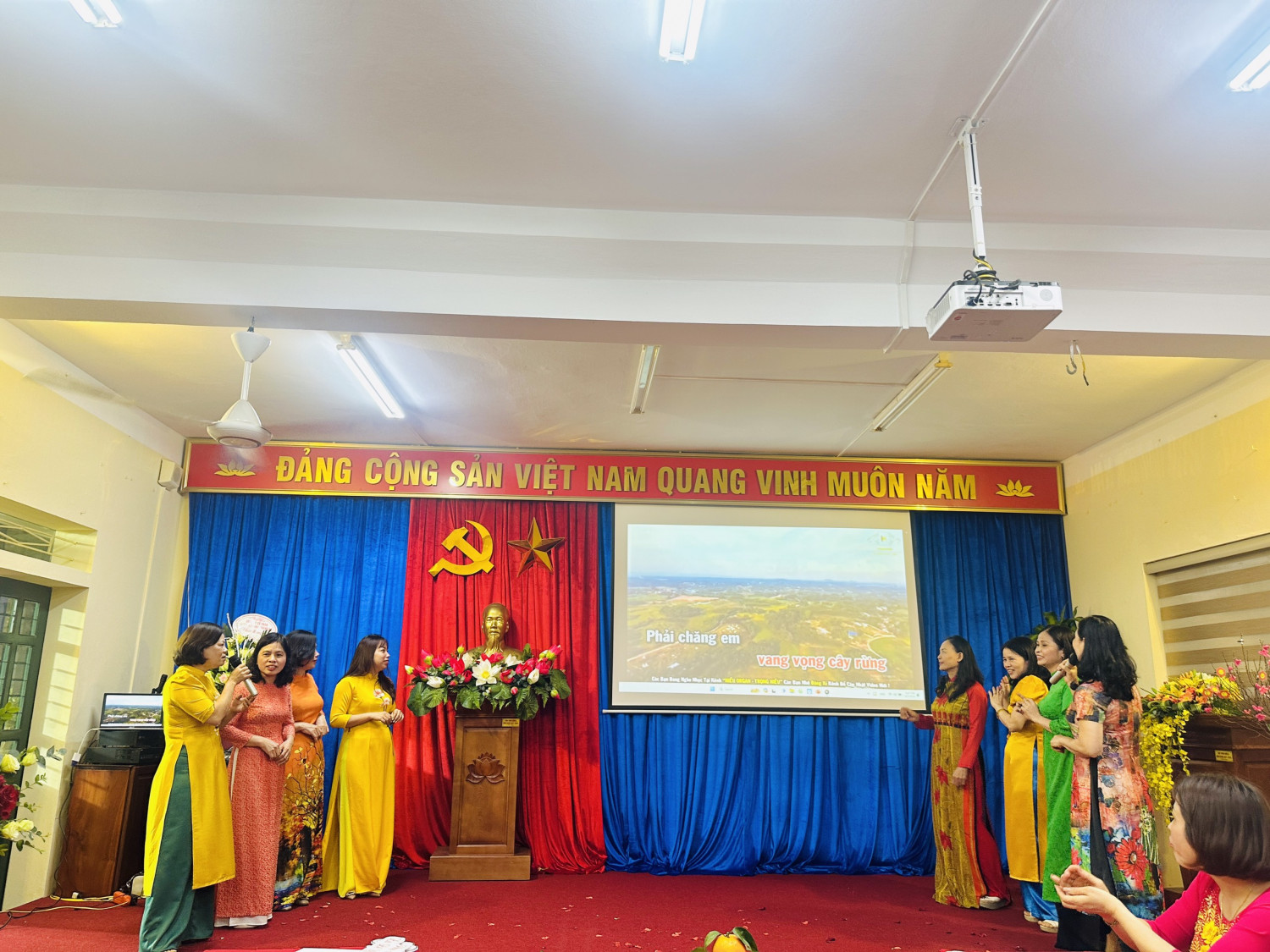 - Hai đồng chí Hoàng Ba; Lạc Mạnh: Đại diện cho phái mạnh của nhà trường lên tặng hoa và hát chúc mừng chị em trong hội nghị.