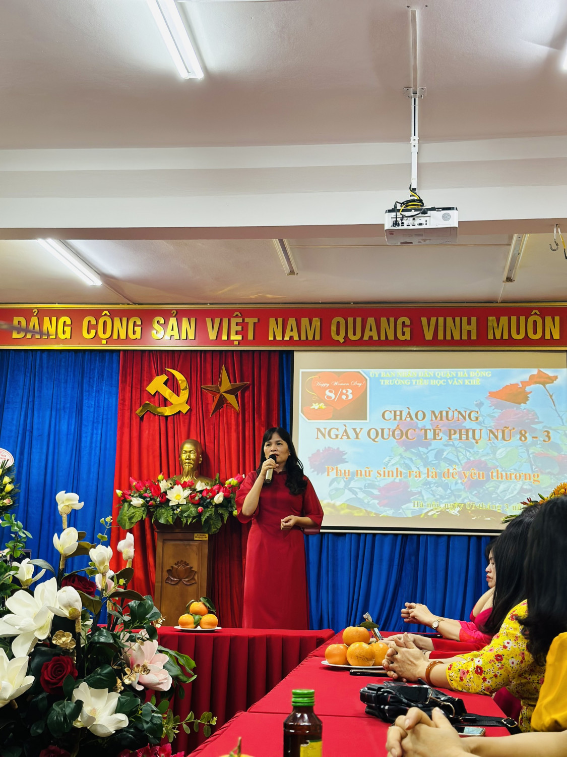- Đồng chí Trần Thi Quyên – Bí thư chi bộ, hiệu trưởng nhà trường lên phát biểu và động viên chị em nhân dịp 8/3.