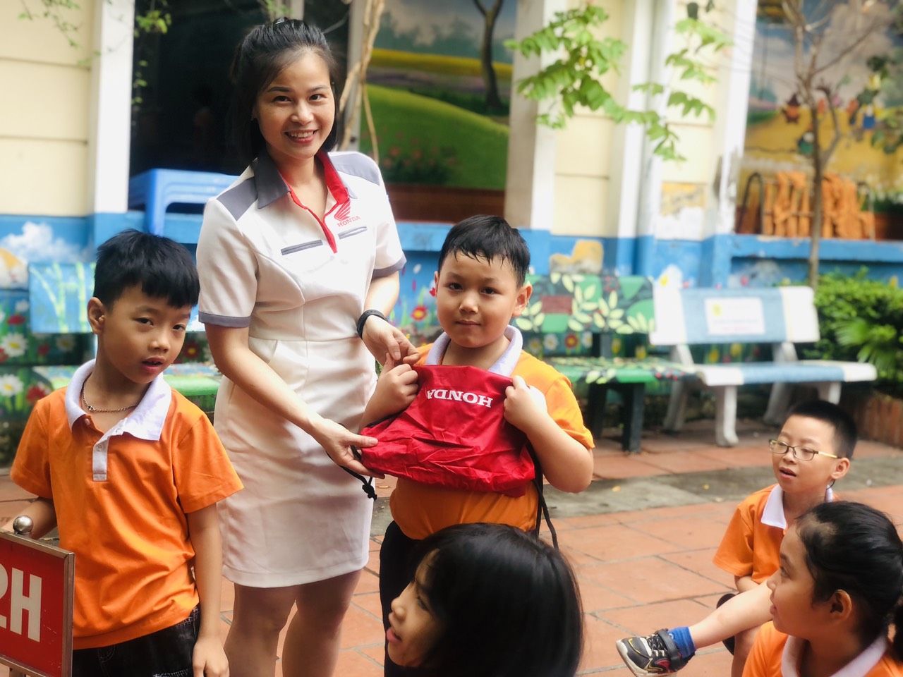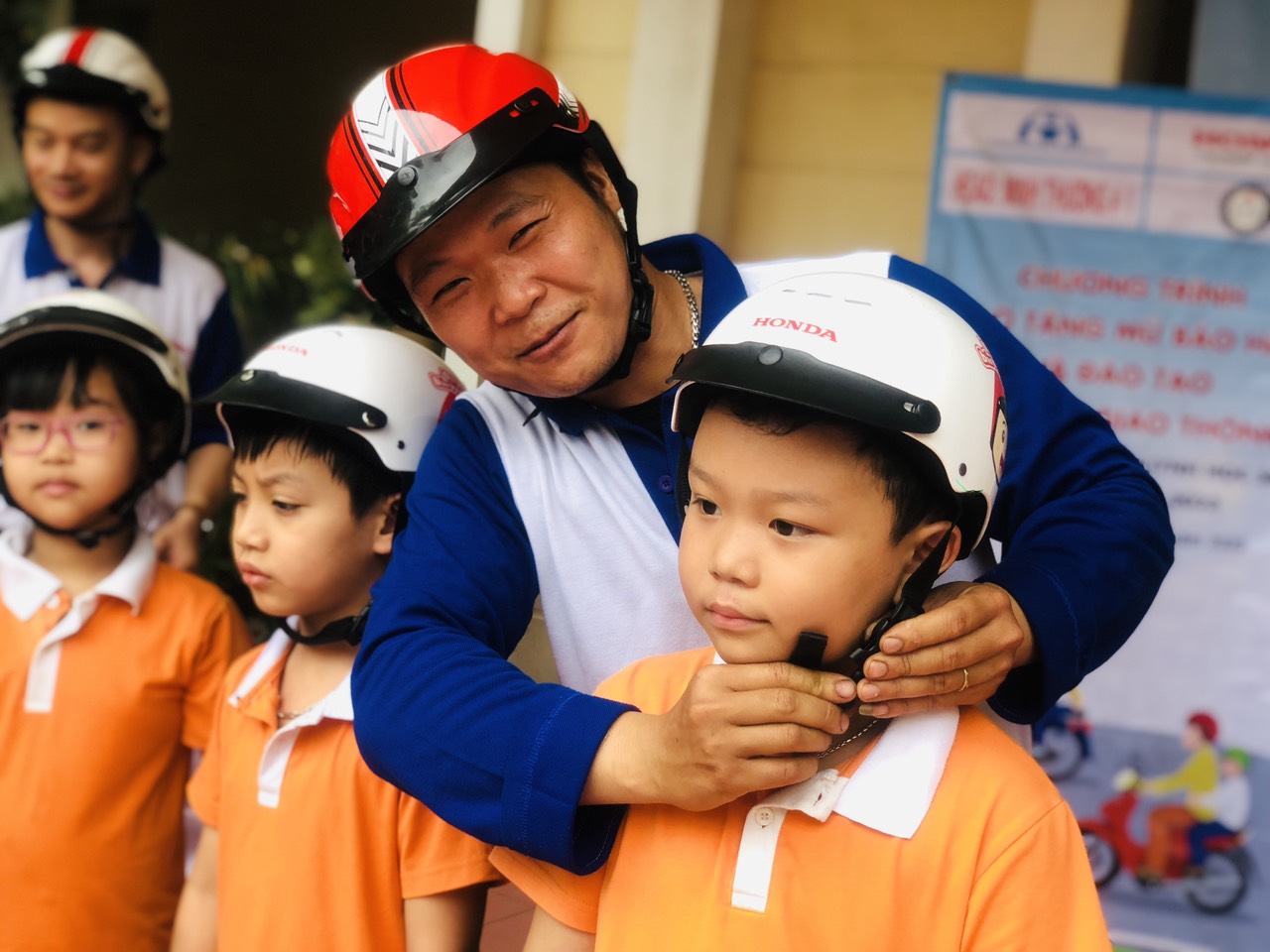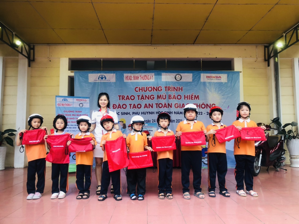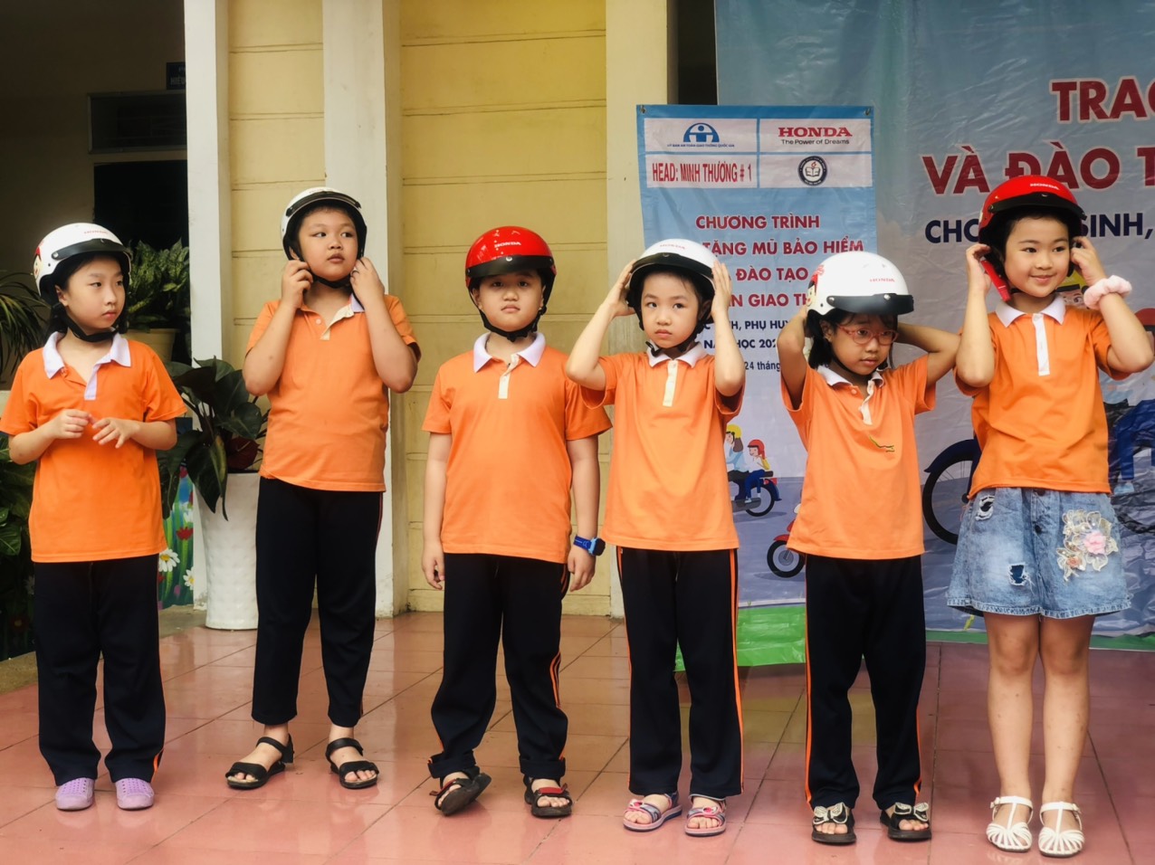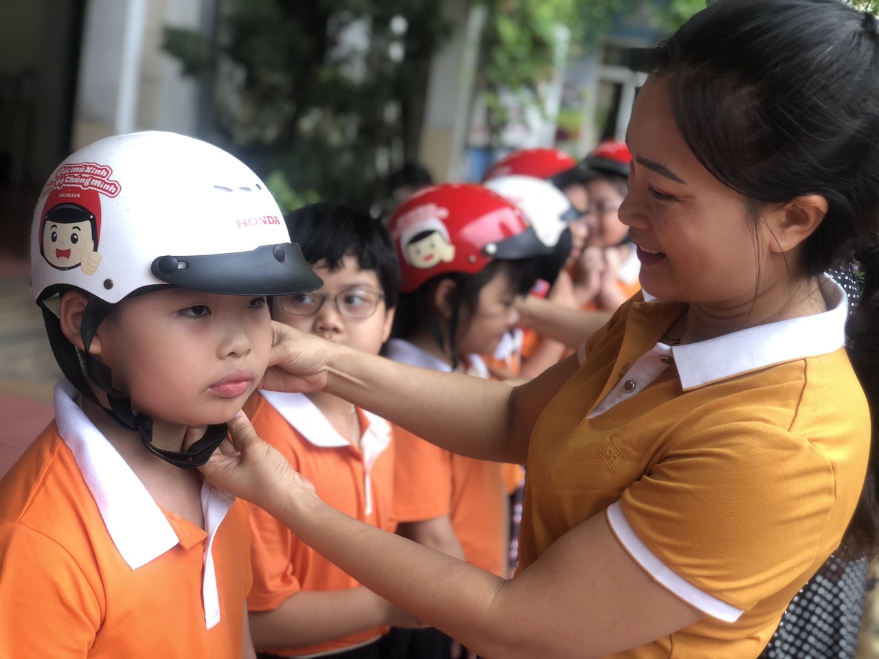 Công ty Honda Việt Nam tặng mũ bảo hiểm cho học sinh lớp 1,2.