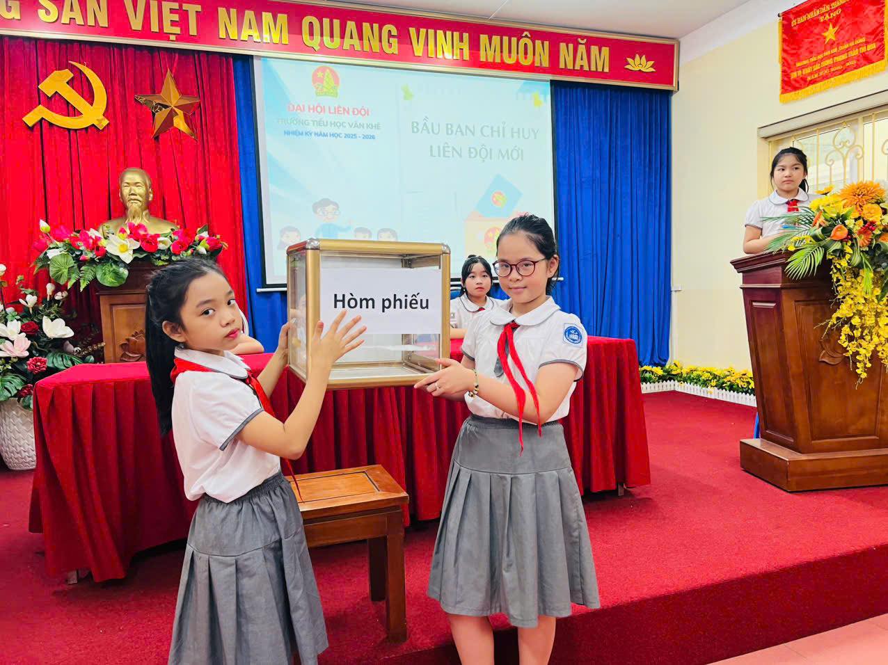 Các bạn cùng nhau nhìn lại hành trình một năm đầy nỗ lực - những phong trào thi đua sôi nổi, những bông hoa chăm ngoan, học tốt rực rỡ, những công trình măng non giàu ý nghĩa. Và từ đó, cùng vẽ nên những ước mơ, những kế hoạch cho một nhiệm kỳ mới - nơi mỗi việc làm tốt, mỗi tấm gương sáng đều góp phần tô thắm trang vàng truyền thống của Liên đội. Đại hội đã bầu ra 15 gương mặt xuất sắc, tiêu biểu, giàu tinh thần trách nhiệm vào Ban Chỉ huy Liên đội nhiệm kỳ 2025-2026. Các em chính là những bông hoa tươi sáng chào đón bình minh. Các em sẽ tiếp tục thắp lửa phong trào, lan tỏa tinh thần đoàn kết, sáng tạo và yêu thương trong mỗi hoạt động Đội, xứng đáng là Đội viên Đội TNTP Hồ Chí Minh. Đại hội Liên đội Trường Tiểu học Văn Khê đã thành công rực rỡ!