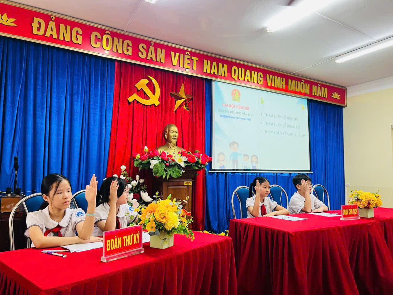 Các bạn cùng nhau nhìn lại hành trình một năm đầy nỗ lực - những phong trào thi đua sôi nổi, những bông hoa chăm ngoan, học tốt rực rỡ, những công trình măng non giàu ý nghĩa. Và từ đó, cùng vẽ nên những ước mơ, những kế hoạch cho một nhiệm kỳ mới - nơi mỗi việc làm tốt, mỗi tấm gương sáng đều góp phần tô thắm trang vàng truyền thống của Liên đội. Đại hội đã bầu ra 15 gương mặt xuất sắc, tiêu biểu, giàu tinh thần trách nhiệm vào Ban Chỉ huy Liên đội nhiệm kỳ 2025-2026. Các em chính là những bông hoa tươi sáng chào đón bình minh. Các em sẽ tiếp tục thắp lửa phong trào, lan tỏa tinh thần đoàn kết, sáng tạo và yêu thương trong mỗi hoạt động Đội, xứng đáng là Đội viên Đội TNTP Hồ Chí Minh. Đại hội Liên đội Trường Tiểu học Văn Khê đã thành công rực rỡ!