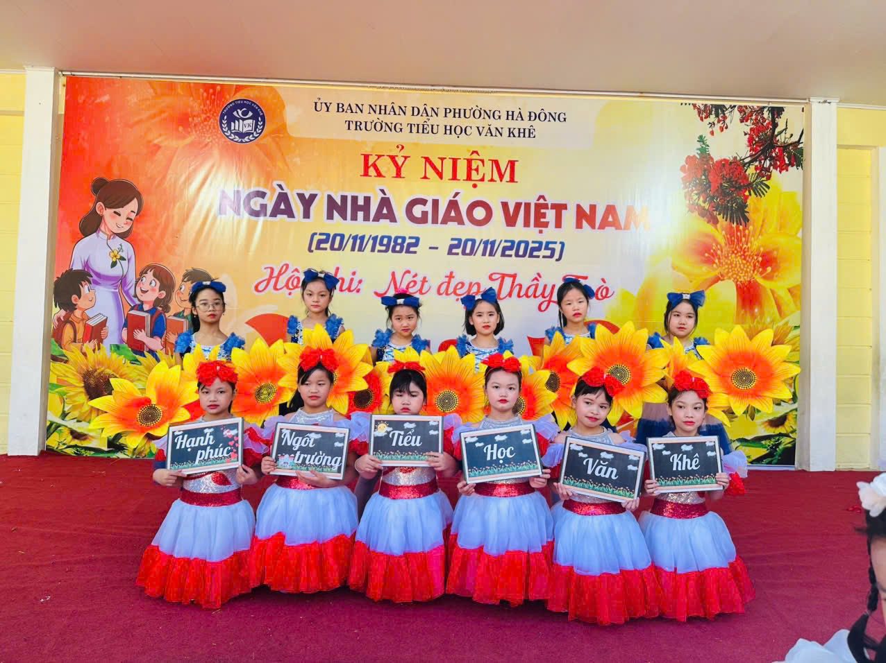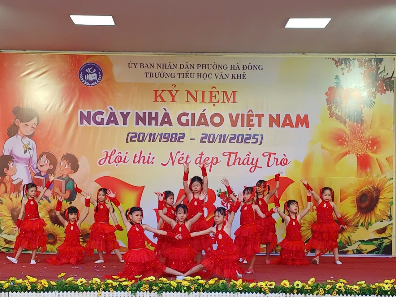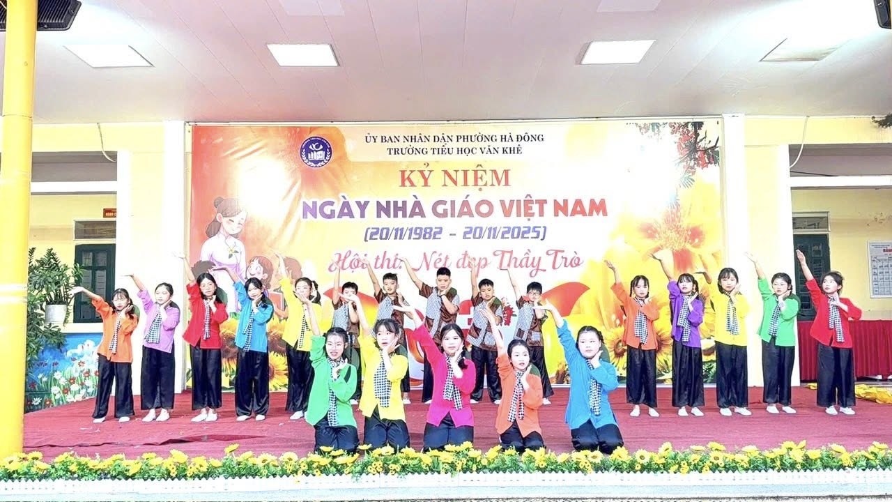 Tháng 11 lại về, mang theo hương sắc của mùa tri ân, mùa mà bao thế hệ học trò hướng về thầy cô với lòng biết ơn sâu nặng. Hòa trong không khí thi đua sôi nổi chào mừng Ngày Nhà giáo Việt Nam 20/11, Trường Tiểu học Văn Khê long trọng tổ chức Hội thi “Nét đẹp thầy trò” trong hai ngày 13 và 14 tháng 11 năm 2025. Hội thi là dịp để thầy và trò cùng nhau viết nên bản hòa ca tri ân, nơi từng tiết mục văn nghệ được cất lên bằng cả trái tim yêu thương và lòng tôn kính. Với chủ đề “Mái trường – Thầy cô – Đất nước”, các tiết mục mang tới hội thi đều được dàn dựng công phu, sáng tạo với đầy cảm xúc. Mỗi lời ca, điệu múa, mỗi nụ cười, ánh mắt đều chất chứa bao tình cảm chân thành mà học sinh Văn Khê gửi tới những người thầy, người cô thân yêu – những người đã tận tụy gieo mầm tri thức, thắp sáng ước mơ cho bao thế hệ học trò. Hội thi “Nét đẹp thầy trò” không chỉ là sân khấu của nghệ thuật, mà còn là khoảnh khắc kết nối yêu thương, để thầy và trò cùng soi lại hành trình đã qua – một hành trình của sự nỗ lực, sẻ chia và biết bao kỷ niệm dưới mái trường thân thương. Thay mặt nhà trường, cô giáo Trần Thị Quyên - Bí thư Đảng uỷ - Hiệu trưởng nhà trường trân trọng ghi nhận tâm huyết của các thầy giáo cô giáo, sự đồng sức đồng lòng cùng chung tay của Quý bậc CMHS 35 lớp. Đặc biệt ghi nhận tinh thần hăng say luyện tập của các Diễn Viên Nhí đã đem đến Hội thi những tiết mục đắc sắc. Hội thi đã khép lại nhưng từng lời ca, tiếng hát, từng điệu múa lúc uyển chuyển, lúc nhanh mạnh, dứt khoát; từng buổi luyện tập vẫn còn mãi trong tâm trí thầy cô và CMHS; đặc biệt đã lưu lại khoảnh khắc toả sáng trong tâm trí mỗi em học sinh. Hội thi đã mở ra nhiều hành trình mới, nhiều dự án mới cho những ngày Lễ, ngày kỷ niệm tiếp theo trong năm. Chúc mừng Hội thi “Nét đẹp thầy trò” năm 2025 của Trường Tiểu học Văn Khê thành công rực rỡ!