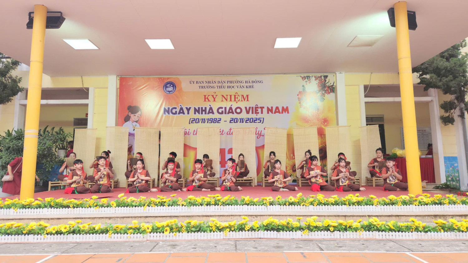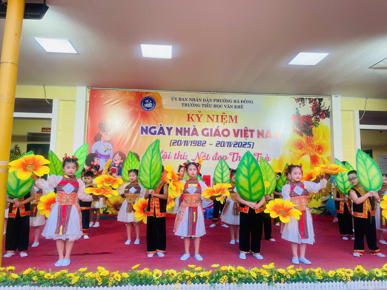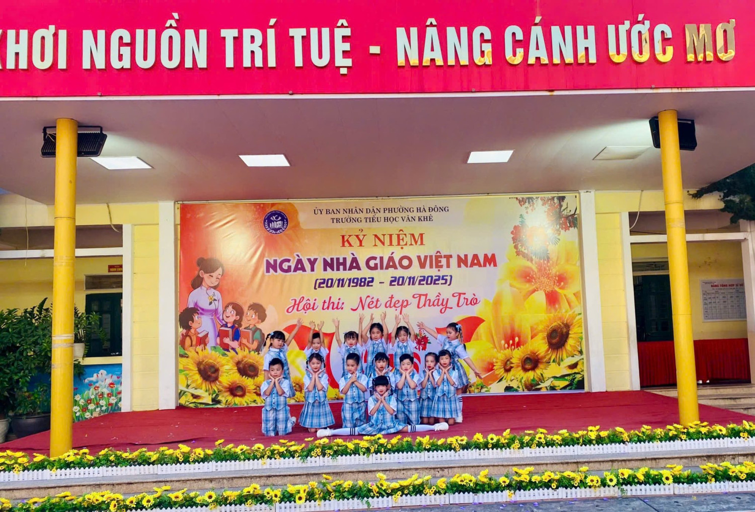 Tháng 11 lại về, mang theo hương sắc của mùa tri ân, mùa mà bao thế hệ học trò hướng về thầy cô với lòng biết ơn sâu nặng. Hòa trong không khí thi đua sôi nổi chào mừng Ngày Nhà giáo Việt Nam 20/11, Trường Tiểu học Văn Khê long trọng tổ chức Hội thi “Nét đẹp thầy trò” trong hai ngày 13 và 14 tháng 11 năm 2025. Hội thi là dịp để thầy và trò cùng nhau viết nên bản hòa ca tri ân, nơi từng tiết mục văn nghệ được cất lên bằng cả trái tim yêu thương và lòng tôn kính. Với chủ đề “Mái trường – Thầy cô – Đất nước”, các tiết mục mang tới hội thi đều được dàn dựng công phu, sáng tạo với đầy cảm xúc. Mỗi lời ca, điệu múa, mỗi nụ cười, ánh mắt đều chất chứa bao tình cảm chân thành mà học sinh Văn Khê gửi tới những người thầy, người cô thân yêu – những người đã tận tụy gieo mầm tri thức, thắp sáng ước mơ cho bao thế hệ học trò. Hội thi “Nét đẹp thầy trò” không chỉ là sân khấu của nghệ thuật, mà còn là khoảnh khắc kết nối yêu thương, để thầy và trò cùng soi lại hành trình đã qua – một hành trình của sự nỗ lực, sẻ chia và biết bao kỷ niệm dưới mái trường thân thương. Thay mặt nhà trường, cô giáo Trần Thị Quyên - Bí thư Đảng uỷ - Hiệu trưởng nhà trường trân trọng ghi nhận tâm huyết của các thầy giáo cô giáo, sự đồng sức đồng lòng cùng chung tay của Quý bậc CMHS 35 lớp. Đặc biệt ghi nhận tinh thần hăng say luyện tập của các Diễn Viên Nhí đã đem đến Hội thi những tiết mục đắc sắc. Hội thi đã khép lại nhưng từng lời ca, tiếng hát, từng điệu múa lúc uyển chuyển, lúc nhanh mạnh, dứt khoát; từng buổi luyện tập vẫn còn mãi trong tâm trí thầy cô và CMHS; đặc biệt đã lưu lại khoảnh khắc toả sáng trong tâm trí mỗi em học sinh. Hội thi đã mở ra nhiều hành trình mới, nhiều dự án mới cho những ngày Lễ, ngày kỷ niệm tiếp theo trong năm. Chúc mừng Hội thi “Nét đẹp thầy trò” năm 2025 của Trường Tiểu học Văn Khê thành công rực rỡ!