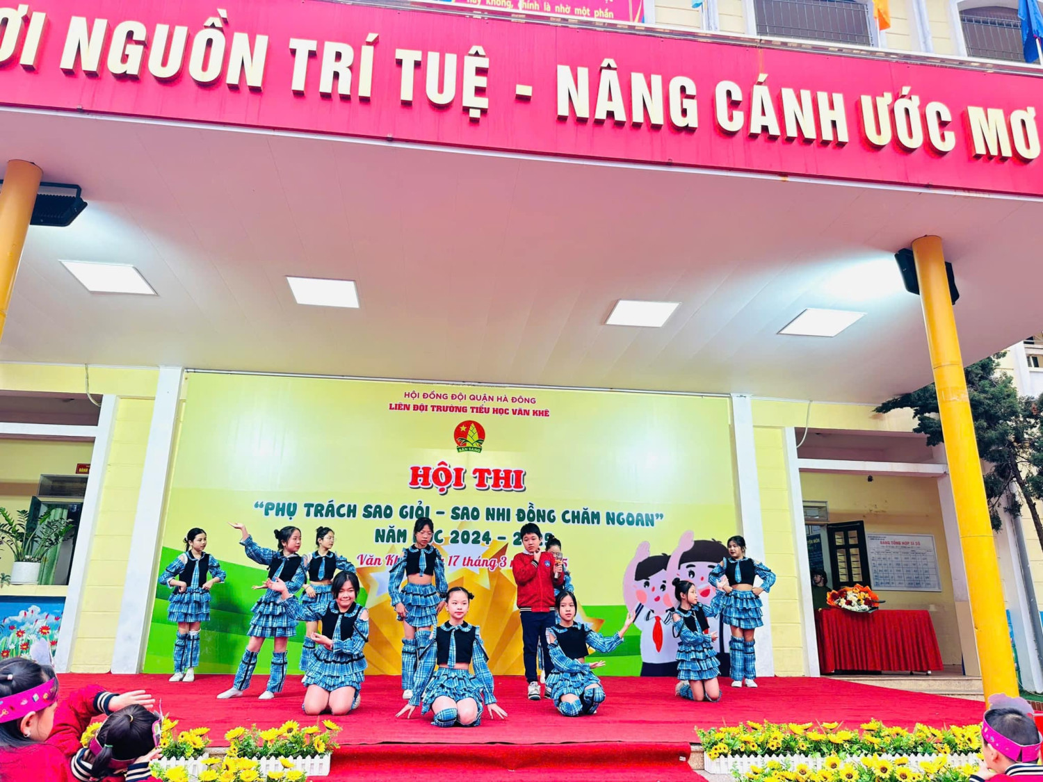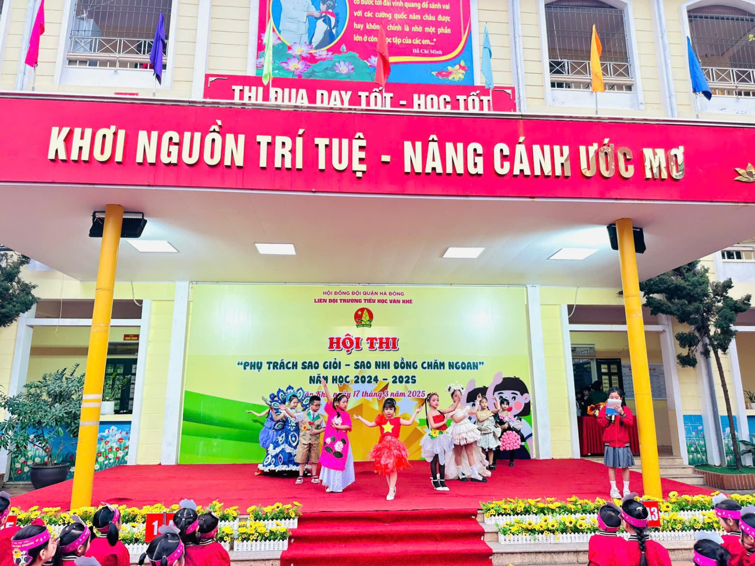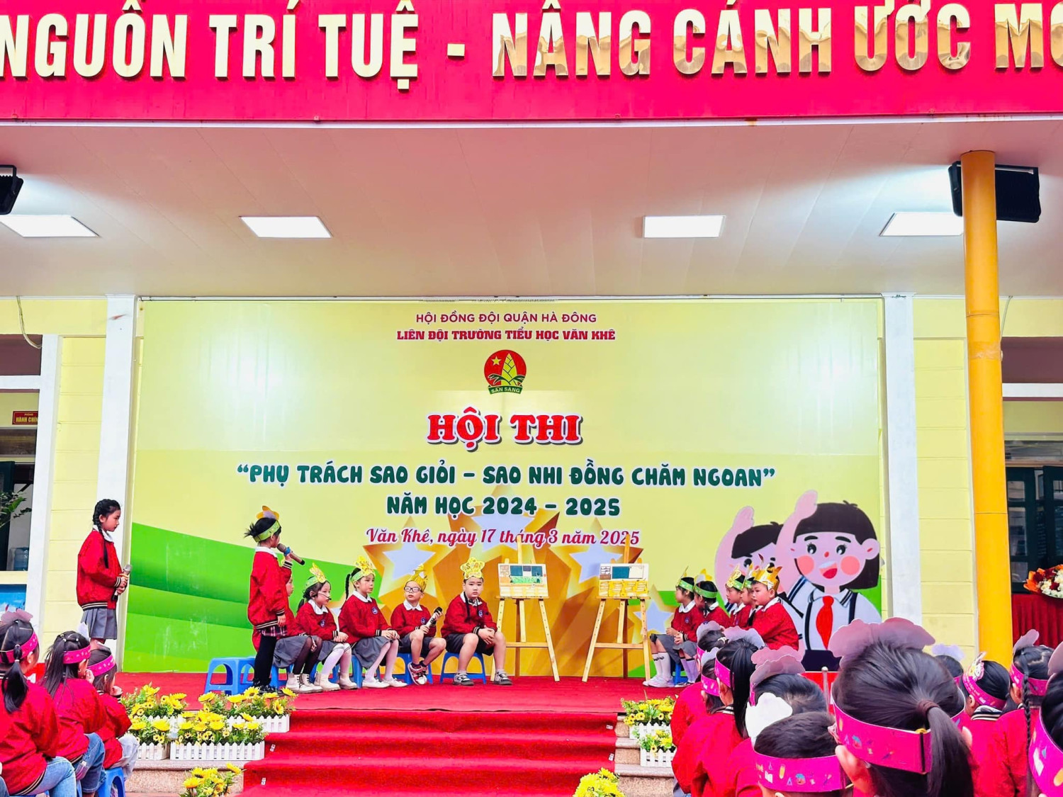 Thực hiện sự chỉ đạo của Hội đồng Đội quận Hà Đông, sáng ngày 17/3/2025, Liên đội trường TH Văn Khê tổ chức Hội thi "Phụ trách sao giỏi - Sao nhi đồng chăm ngoan". Về dự và động viên Hội thi có đồng chí Nguyễn Thị Hà - Phó Bí thư Quận đoàn, Chủ tịch Hội đồng Đội quận, đồng chí Nguyễn Thị Thắm - Bí thư Đoàn phường La Khê, cô giáo Trần Thị Quyên - Bí thư Chi bộ, Hiệu trưởng nhà trường cùng các cô giáo trong Ban Giám hiệu, Hội đồng sư phạm nhà trường cùng hơn 1600 các em thiếu nhi, học sinh nhà trường có mặt đông đủ, tham dự chương trình. Hội thi "Phụ trách Sao giỏi - Sao Nhi đồng chăm ngoan" là một hoạt động truyền thống, có ý nghĩa thiết thực của tổ chức Đội nhằm: Nâng cao chất lượng hoạt động Đội và phong trào thiếu nhi: Hội thi là dịp để các em nhi đồng thể hiện tài năng, kiến thức, kỹ năng của mình, đồng thời là cơ hội để các anh chị phụ trách sao giao lưu, học hỏi, nâng cao trình độ chuyên môn, nghiệp vụ. Tạo sân chơi lành mạnh, bổ ích cho các em nhi đồng: Hội thi giúp các em phát triển toàn diện về đức, trí, thể, mỹ, đồng thời rèn luyện tinh thần đoàn kết, ý thức tập thể. Phát hiện và bồi dưỡng những nhân tố tích cực cho công tác Đội Hội thi là cơ sở để Hội đồng Đội quận đánh giá, lựa chọn và bồi dưỡng những em nhi đồng có năng khiếu, phẩm chất tốt để tham gia các hoạt động Đội cấp cao hơn. Dưới đây là hình ảnh được ghi nhận. Xin mời Quý vị vào xem ạ!