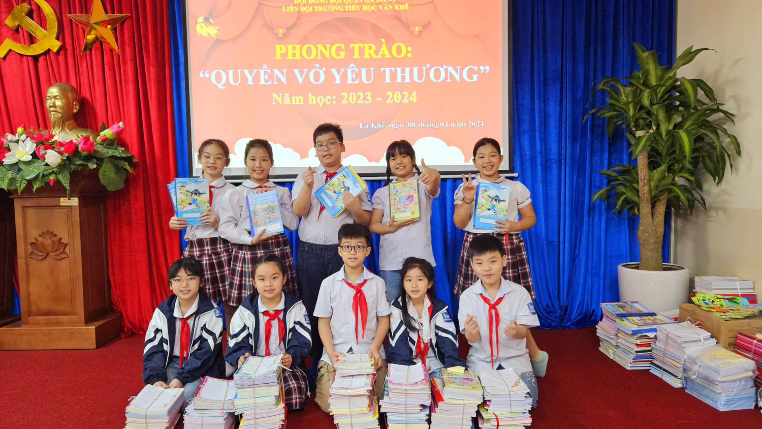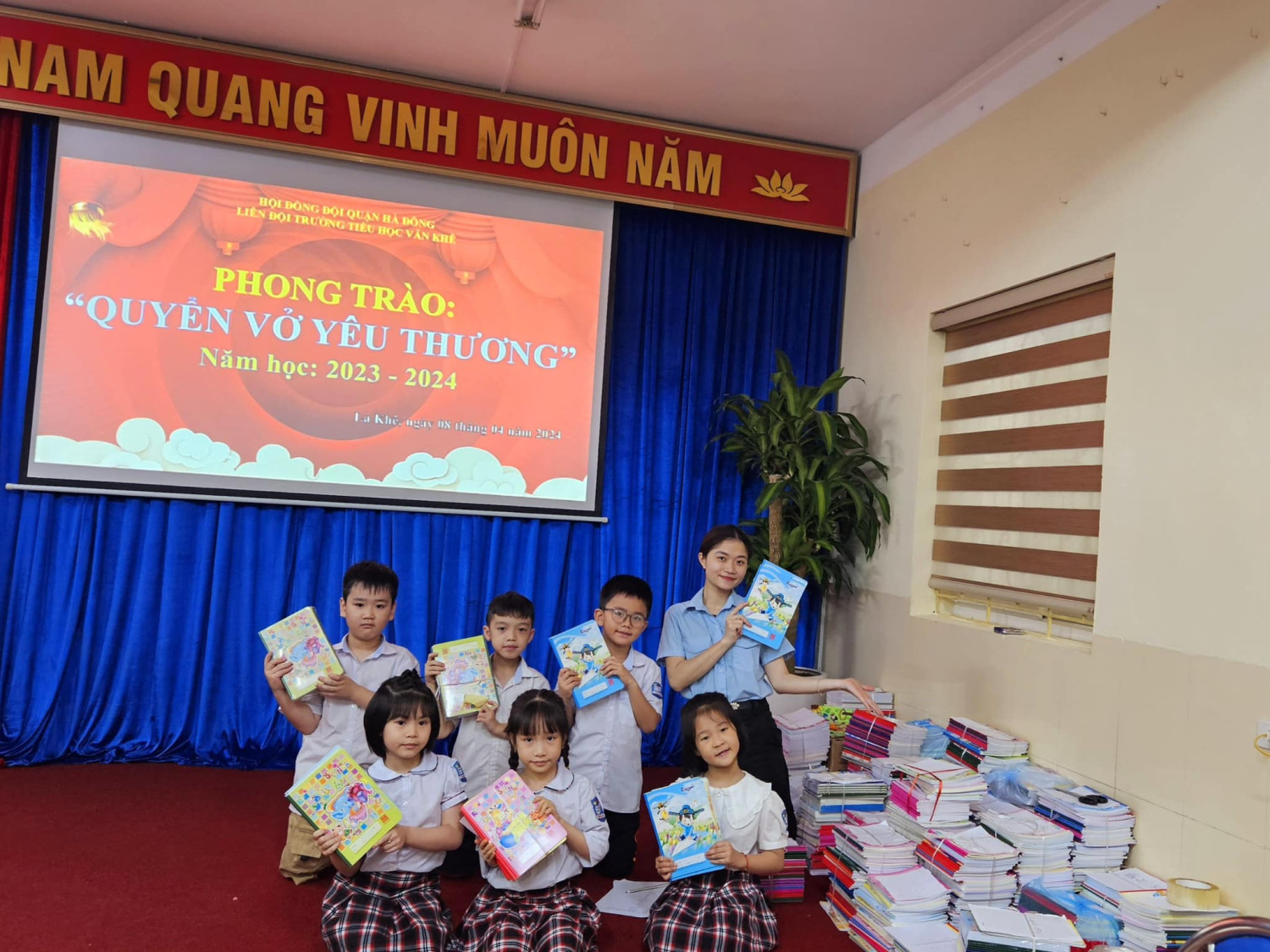 Niềm vui sẽ nhân đôi…!!!” Yêu thương chỉ lan tỏa qua chia sẻ. Chúng ta chỉ có thể có nhiều yêu thương hơn cho mình bằng cách trao đi yêu thương. Hưởng ứng cuộc vận động theo Công văn số 236-CV/HĐTP ngày 28/3/2024 của Hội Đồng Đội TP Hà Nội về việc triển khai chương trình “QUYỂN VỞ YÊU THƯƠNG” năm học 2023-2024. Liên đội trường Tiểu học Văn Khê đã phát động phong trào quyên góp những quyển vở sạch, đẹp để ủng hộ cho các bạn nhỏ có hoàn cảnh khó khăn, thiếu nhi vùng sâu, vùng xa, vùng biên giới, hải đảo, và nước Cộng hòa Dân chủ Nhân dân Lào. Đây là một chương trình thiết thực, vô cùng ý nghĩa nên được các bạn thiếu niên, nhi đồng tích cực tham gia với kết quả hội thu được 2.317 quyển vở. Gương mặt bạn nào cũng rạng rỡ, tươi tắn gửi đến những món quà bé nhỏ nhưng chứa đựng tình cảm từ đáy lòng các em. Từ những hành động vô cùng to lớn ấy mà NGÔI NHÀ CHUNG MANG TÊN Tiểu học Văn Khê LUÔN ĐẦY ẮP TÌNH YÊU THƯƠNG, SỰ SẺ CHIA và LUÔN SẴN LÒNG GIÚP ĐỠ NGƯỜI KHÁC trong khả năng của mình. Học sinh Tiểu học Văn Khê LUÔN VUI VẺ, nhận ra nhiều Ý NGHĨA trong cuộc sống và CÓ Ý THỨC HỌC TẬP, LUYỆN RÈN để truyền thống ấy ĐƯỢC PHÁT HUY MẠNH MẼ. Thay mặt Liên đội, cô giáo Lê Thị Phi Nga - Bí thư Chi đoàn - Tổng phụ trách Đội đã bàn giao toàn bộ số vở quyên góp được cho Hội đồng Đội quận Hà Đông. Mong rằng những quyển vở yêu thương, những tấm lòng nhân ái của các con sẽ sớm được chuyển đến các bạn nhỏ còn khó khăn. Thay mặt nhà trường, cô giáo Trần Thị Quyên - Hiệu trưởng nhà trường xin trân trọng cảm ơn Quý bậc cha mẹ học sinh đã giúp cho các con có được QUYỂN VỞ mang đầy TÌNH YÊU THƯƠNG VÀ NHÂN VĂN! Dưới đây là một số hình ảnh của chương trình: Quyển vở yêu thương! Xin mời quý vị cùng cảm nhận!