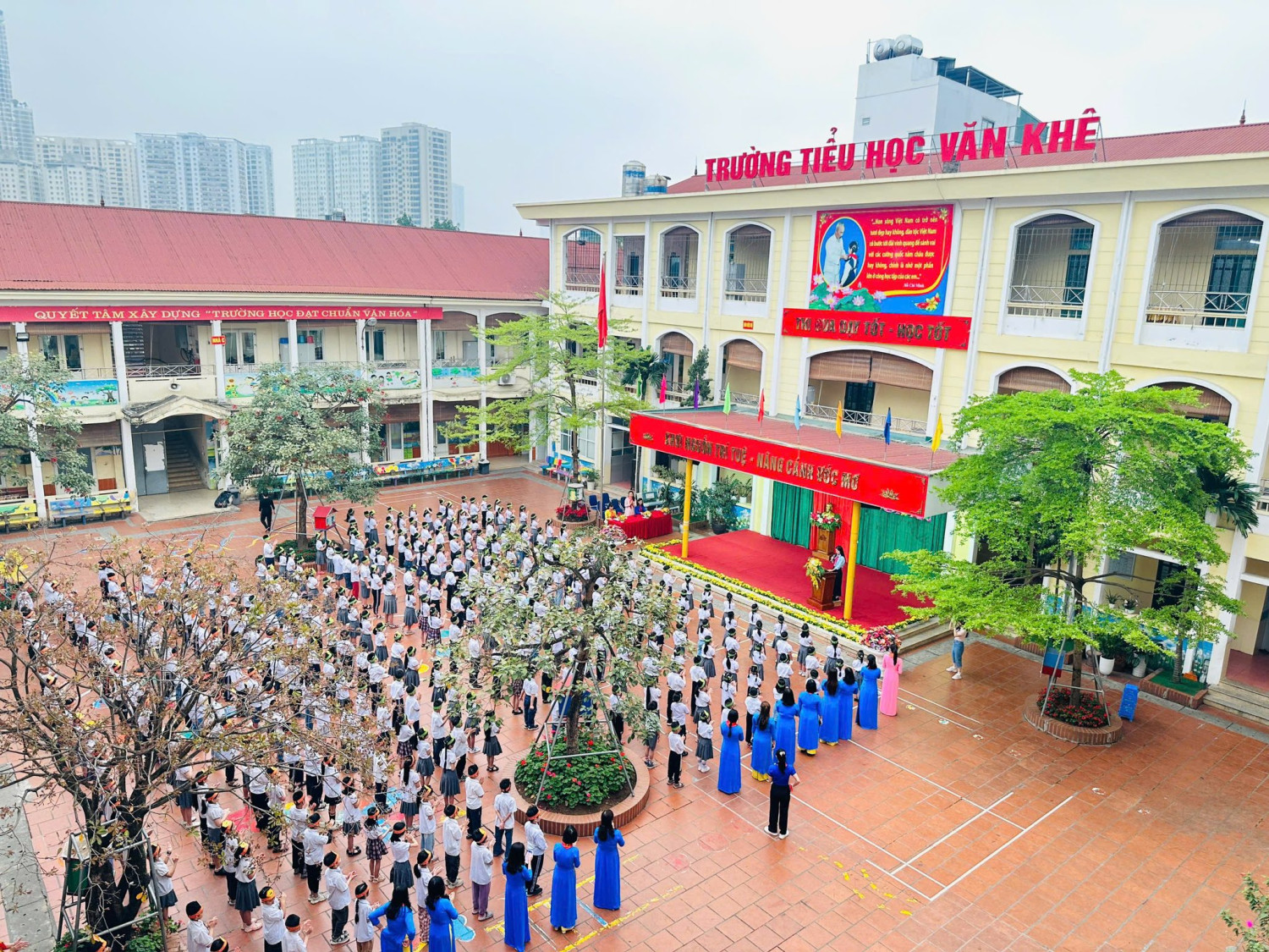 Hòa chung không khí vui tươi, phấn khởi của cả nước đang hướng về kỷ niệm 94 năm ngày thành lập Đoàn TNCS Hồ Chí Minh (26/3/1931 - 26/3/2025) và hướng tới kỷ niệm 50 năm ngày Giải phóng miền Nam, thống nhất đất nước (30/4/1975 - 30/4/2025), sáng ngày 26/3/2025, Liên đội trường Tiểu học Văn Khê đã long trọng tổ chức Lễ kết nạp Đội viên cho 327 nhi đồng ưu tú của khối 3 và khối 4. Buổi lễ là dấu mốc ý nghĩa, ghi nhận sự nỗ lực và trưởng thành của các em học sinh – những bông hoa nhỏ đang từng ngày rèn luyện và phấn đấu theo gương Bác Hồ vĩ đại. Sau khi được trao khăn quàng đỏ – biểu tượng thiêng liêng của người đội viên, bạn Bùi Duy Thái đã thay mặt các bạn đọc vang lời hứa đội viên, thể hiện quyết tâm sống, học tập và rèn luyện xứng đáng với danh hiệu cao quý này. Cô Trần Thị Quyên – Bí thư chi bộ, Hiệu trưởng nhà trường đã có những lời phát biểu đầy xúc động, dặn dò yêu thương và cùng các em đọc lại 5 điều Bác Hồ dạy. Những lời căn dặn ấy chính là kim chỉ nam để mỗi đội viên tiếp tục cố gắng, tự tin, bản lĩnh và luôn hướng tới những điều tốt đẹp. Chúc mừng 327 đội viên!