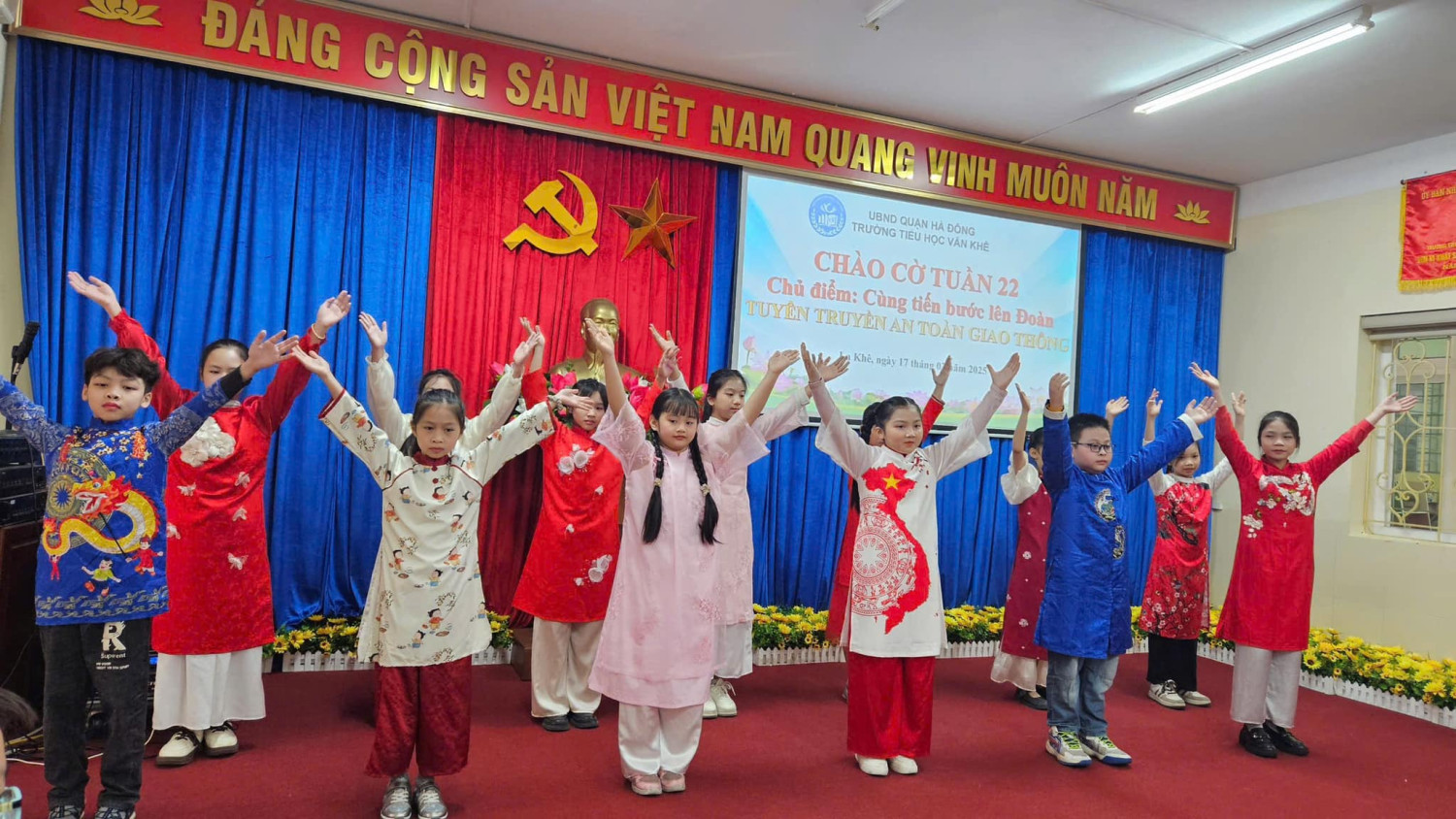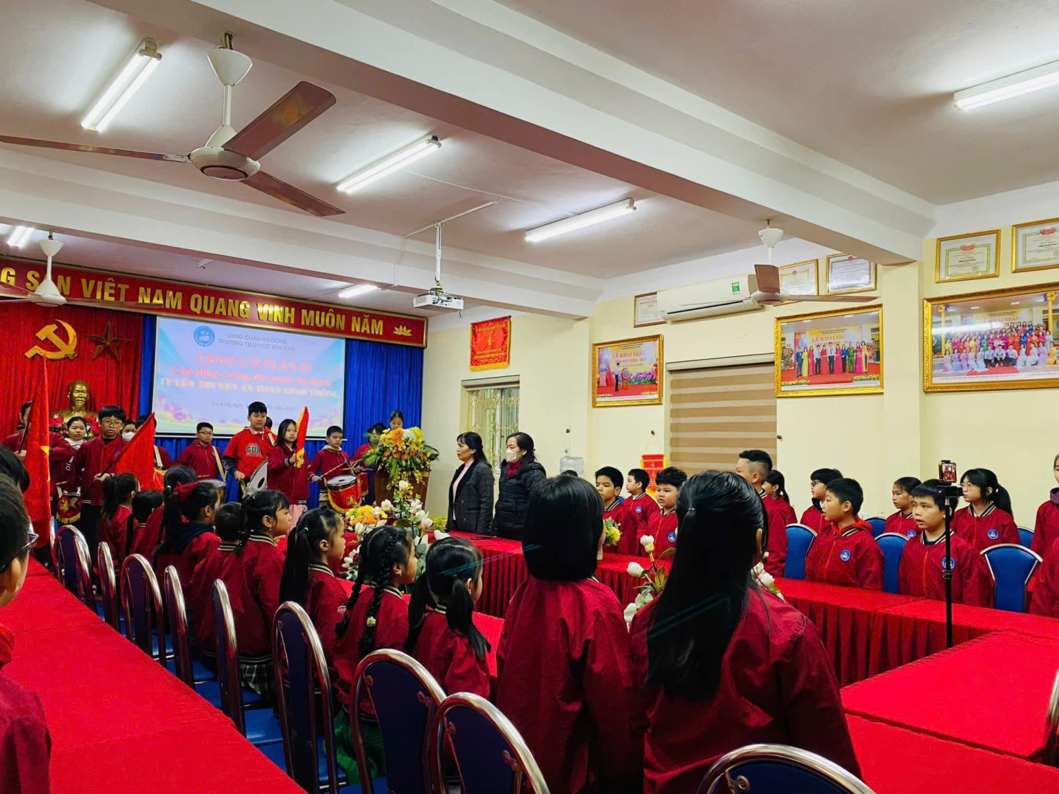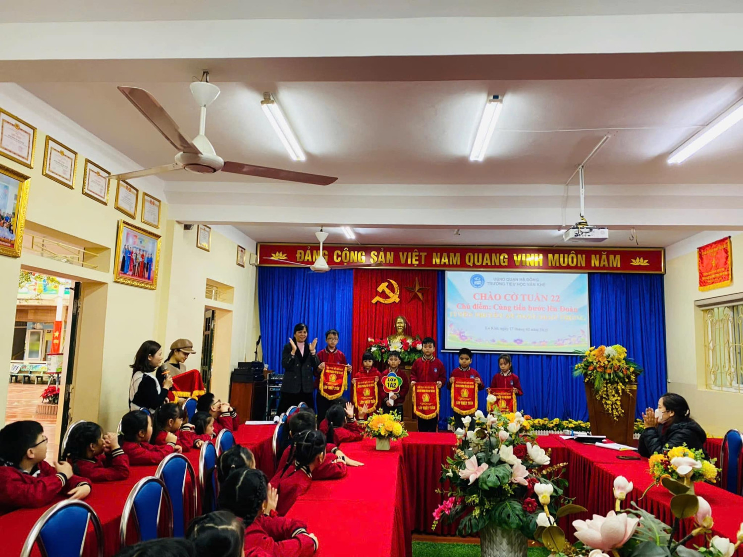 Lớp 1A7 tiêu biểu trong học tập. Và tiết mục văn nghệ tiêu biểu của lớp 4A3 giúp cho các em tự tin, rèn kỹ năng sân khấu. Hôm nay do trời lạnh, Tiết sinh hoạt dưới cờ được tổ chức tại phòng Hội đồng và phát trực tiếp cho học sinh toàn trường dự đã thu hút học sinh tích cực tham gia, từng bước đáp ứng yêu cầu, mục tiêu phát triển toàn diện phẩm chất và năng lực của chương trình GDPT 2018. Với mong muốn mang đến cho HS những kiến thức, kỹ năng thiết thực, các hoạt động của nhà trường được tổ chức ngắn gọn phù hợp với điều kiện CSVC, phù hợp với thời tiết luôn được nhà trường và Ban công tác Đội chú trọng! Dưới đây là một số hình ảnh được ghi nhận, xin kính mời quý vị vào xem ạ!