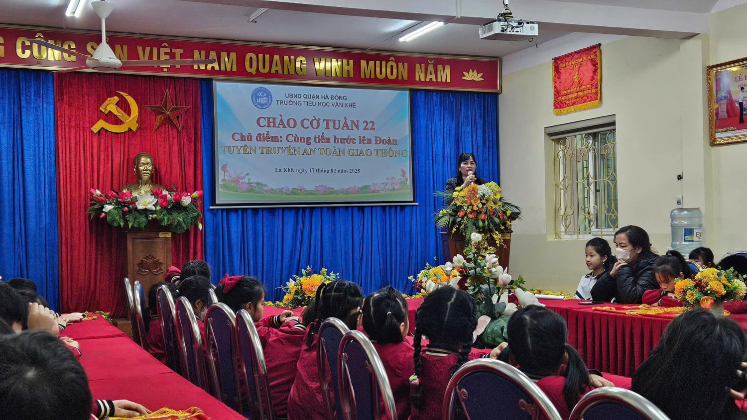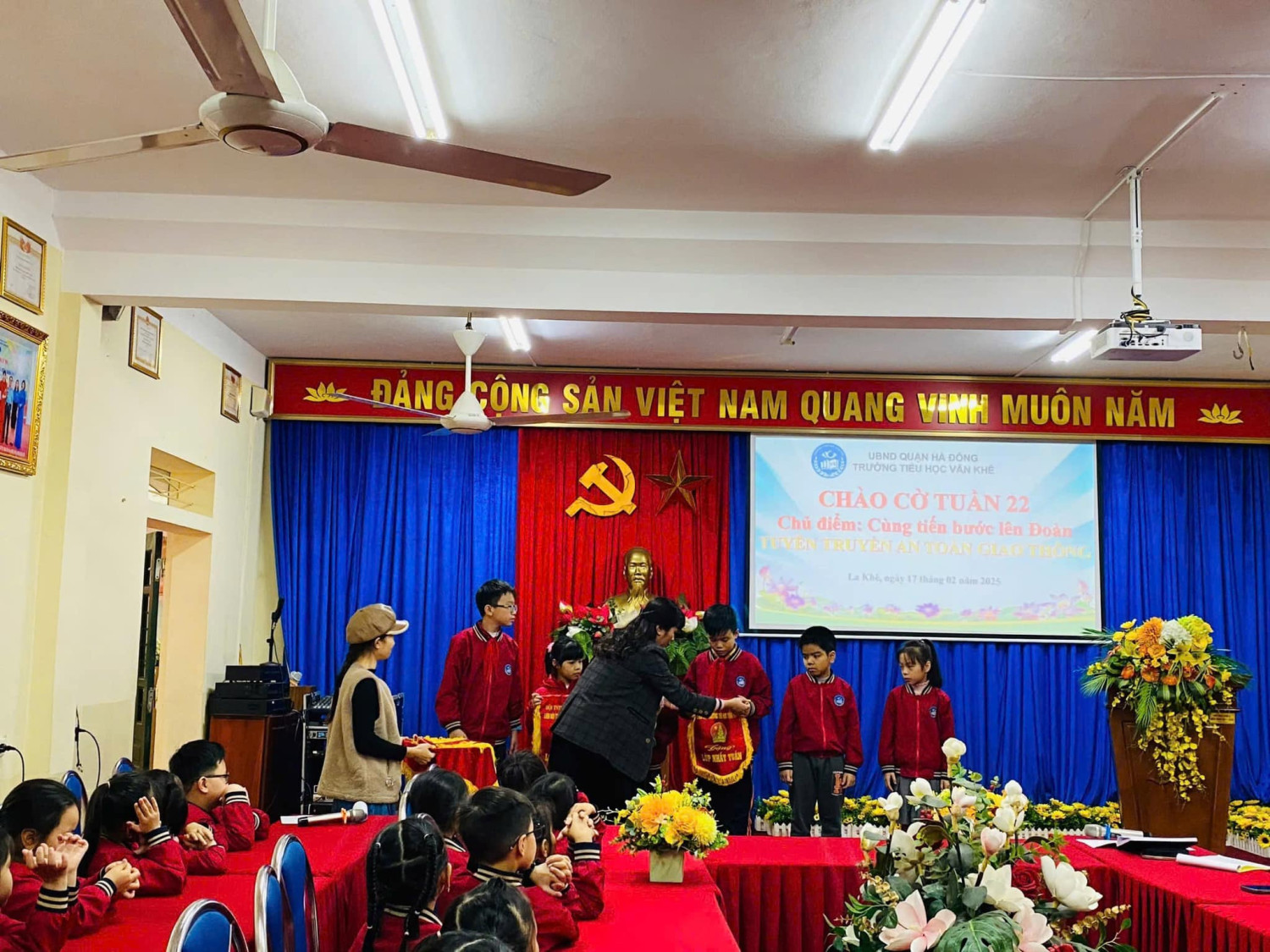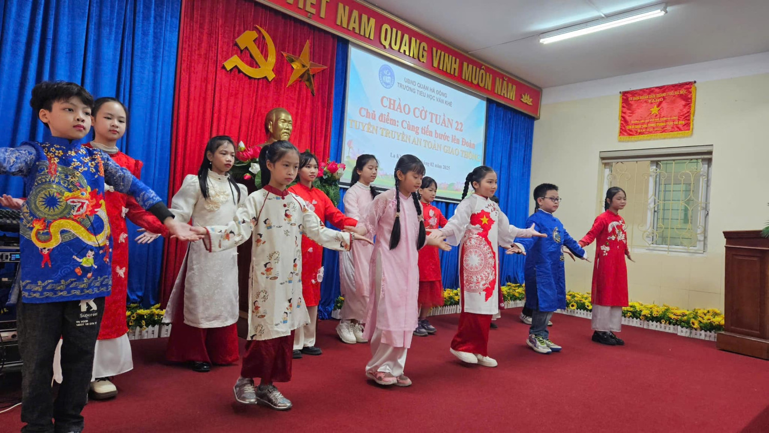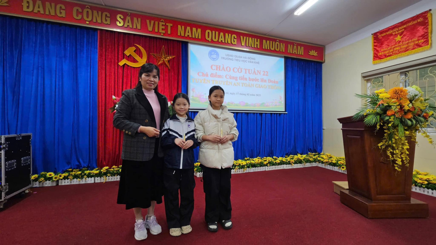 Lớp 1A7 tiêu biểu trong học tập. Và tiết mục văn nghệ tiêu biểu của lớp 4A3 giúp cho các em tự tin, rèn kỹ năng sân khấu. Hôm nay do trời lạnh, Tiết sinh hoạt dưới cờ được tổ chức tại phòng Hội đồng và phát trực tiếp cho học sinh toàn trường dự đã thu hút học sinh tích cực tham gia, từng bước đáp ứng yêu cầu, mục tiêu phát triển toàn diện phẩm chất và năng lực của chương trình GDPT 2018. Với mong muốn mang đến cho HS những kiến thức, kỹ năng thiết thực, các hoạt động của nhà trường được tổ chức ngắn gọn phù hợp với điều kiện CSVC, phù hợp với thời tiết luôn được nhà trường và Ban công tác Đội chú trọng! Dưới đây là một số hình ảnh được ghi nhận, xin kính mời quý vị vào xem ạ!