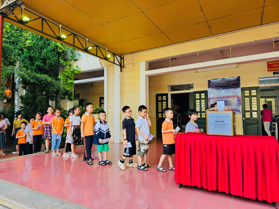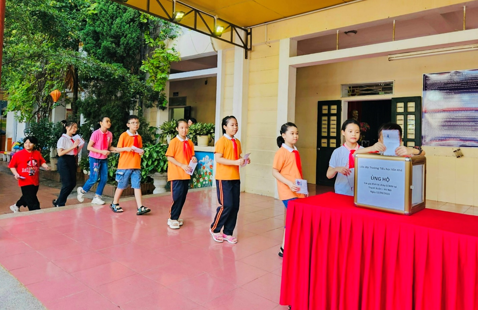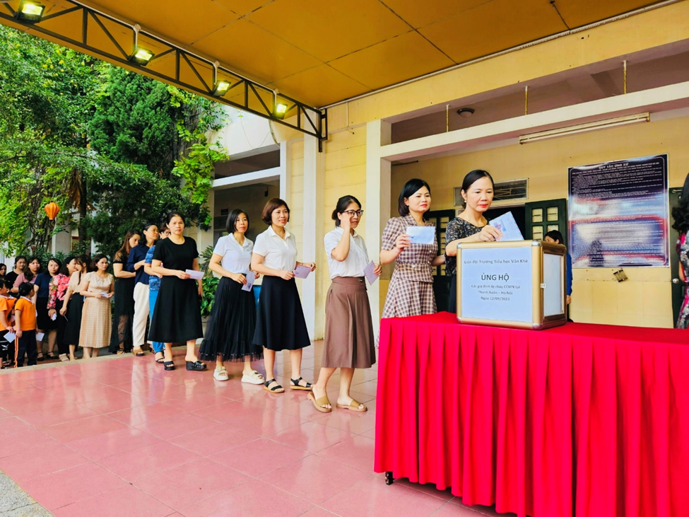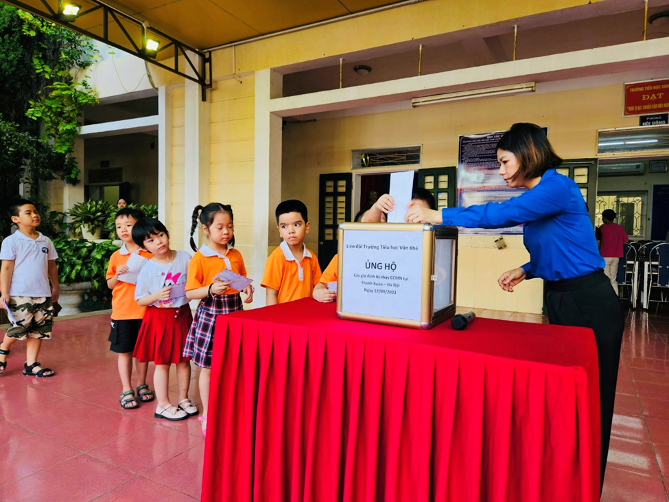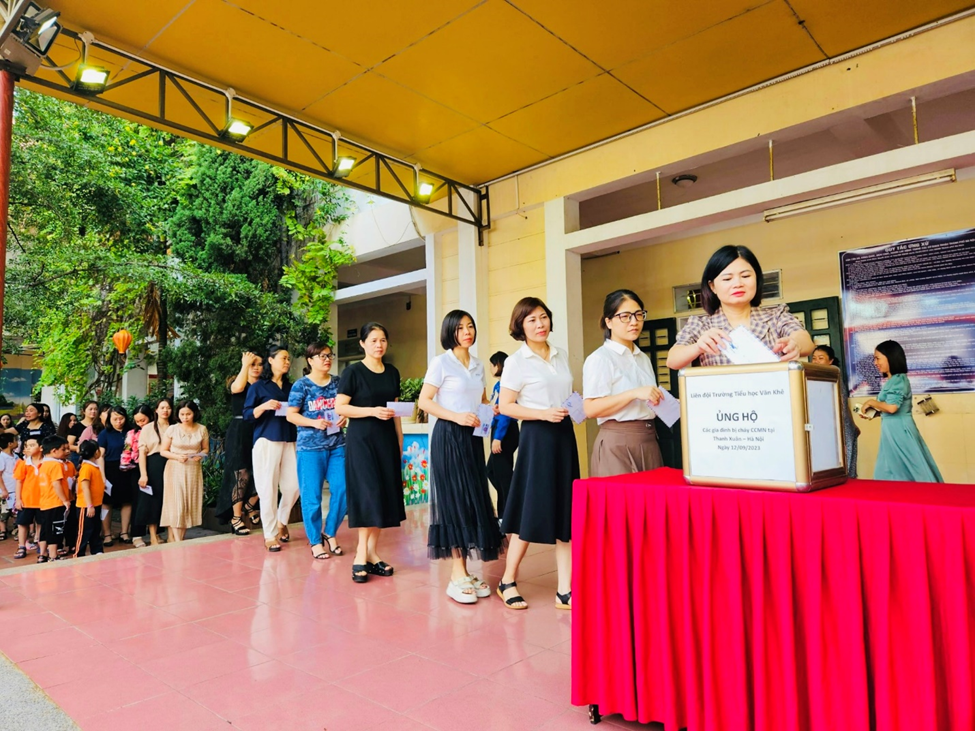 Sáng ngày 15/9/2023, sau khi Liên đội trường Tiểu học Văn Khê làm lễ chào cờ đầu tuần. Toàn trường dành 1 phút mặc niệm các nạn nhân trong vụ hỏa hoạn cháy chung cư mini đêm 12/9 tại phường Khương Đình, quận Thanh Xuân, Hà Nội. Với tinh thần tương thân tương ái, công đoàn và liên đội nhà trường phát động tới toàn thể cán bộ, giáo viên nhân viên và học sinh ủng hộ các gia đình bị thiệt hại về người và của trong vụ hỏa hoạn. Tấm lòng yêu thương, sự sẻ chia của thầy và trò nhà trường phần nào động viên các gia đình gặp nạn làm vơi bớt nỗi nhọc nhằn về vật chất nhưng vết thương lòng thì vẫn còn đâu đó nỗi ám ảnh, sự xót xa của bao con người..... Tương lai của các em sinh viên, các bạn học sinh, các em nhỏ đang rộng mở … Họ là niềm tự hào của bao gia đình và dòng họ..thế mà chỉ qua một đêm cánh cửa tương lai đã khép lại. Chỉ để lại sự chia ly, đau đớn đến tột độ. Thầy và trò trường Tiểu học Văn Khê xin gửi lời chia buồn tới các nạn nhân. Kết thúc buổi lễ cô giáo Đinh Thị Ngọc Lan – Phó hiệu trưởng nhà trường lên căn dặn học sinh về kỹ năng PCCC và an toàn khi tham gia giao thông. Chúc thầy và trò nhà trường luôn được mạnh khỏe, bình an. Sau đây là một số hình ảnh của buổi sinh hoạt:
