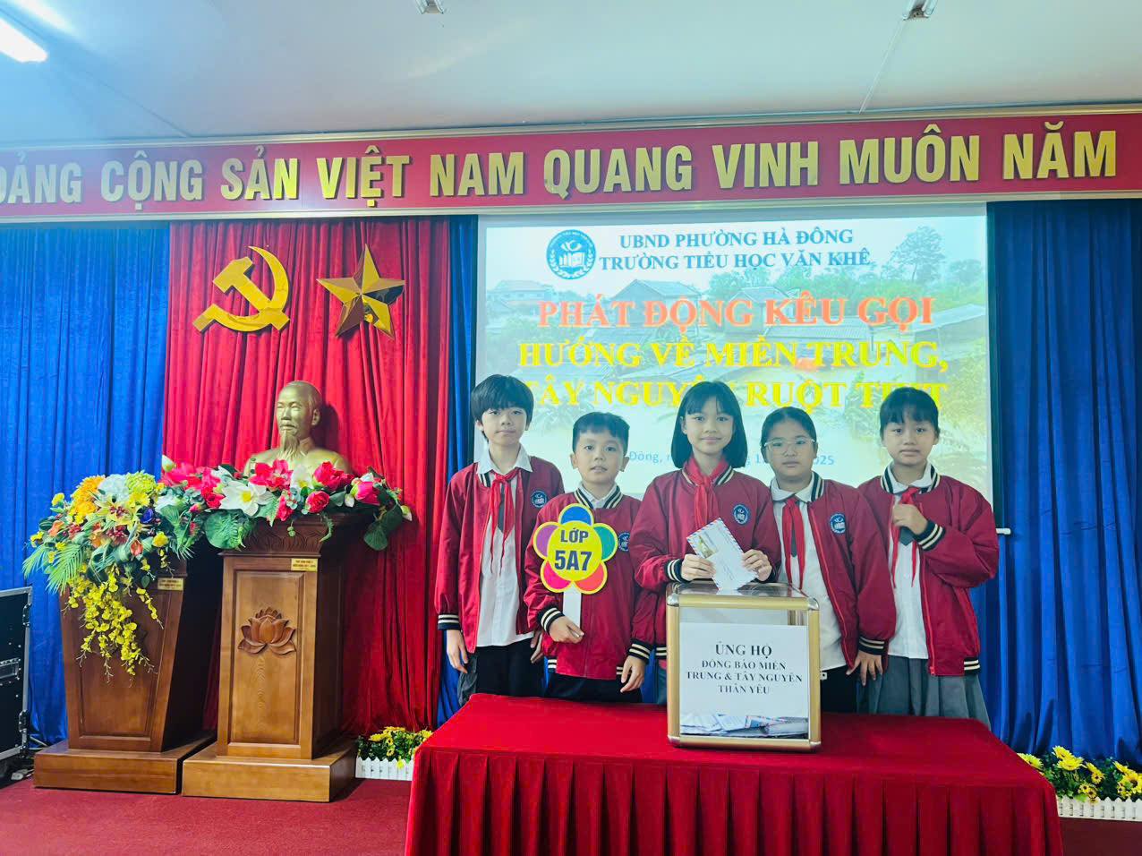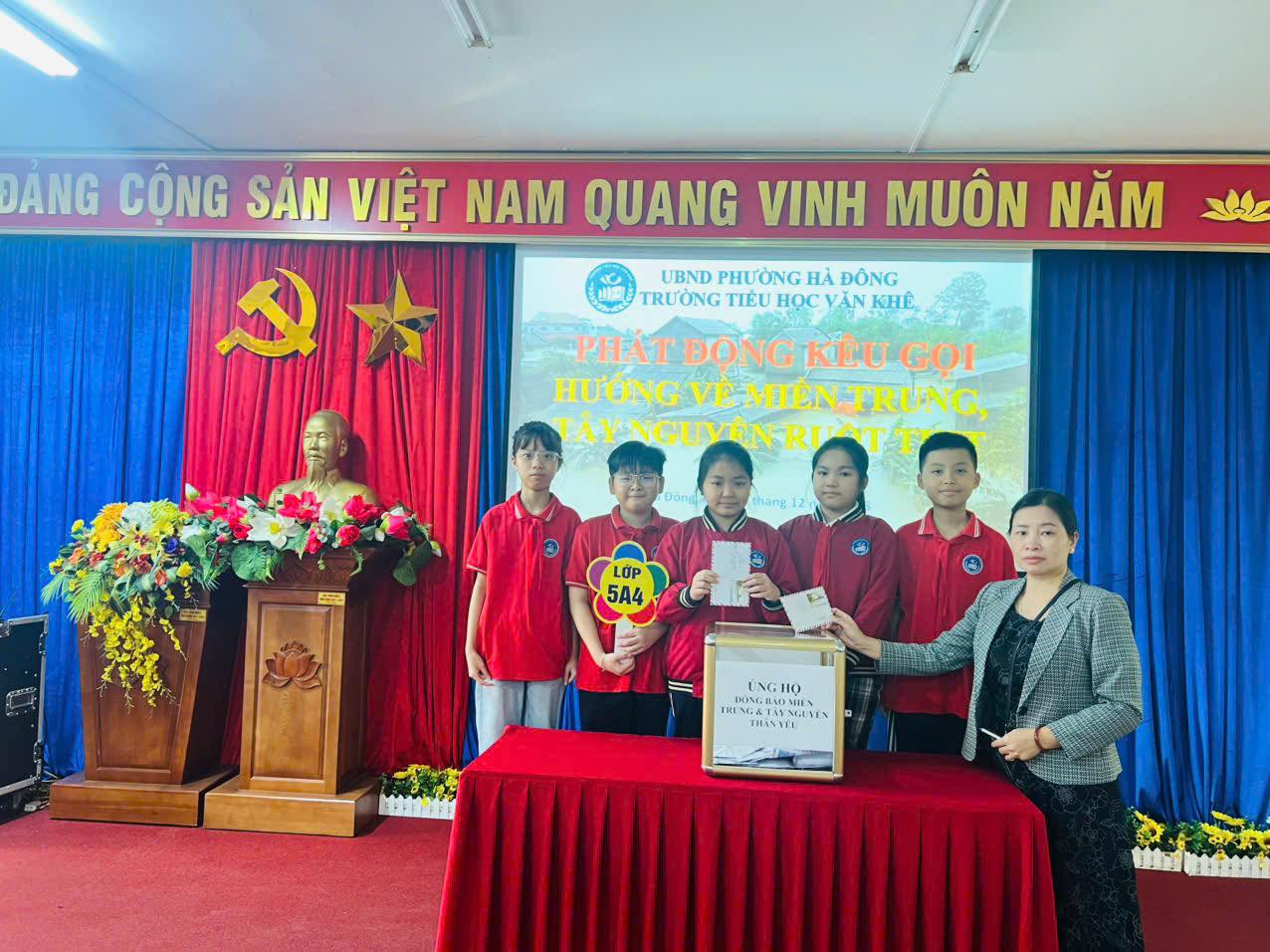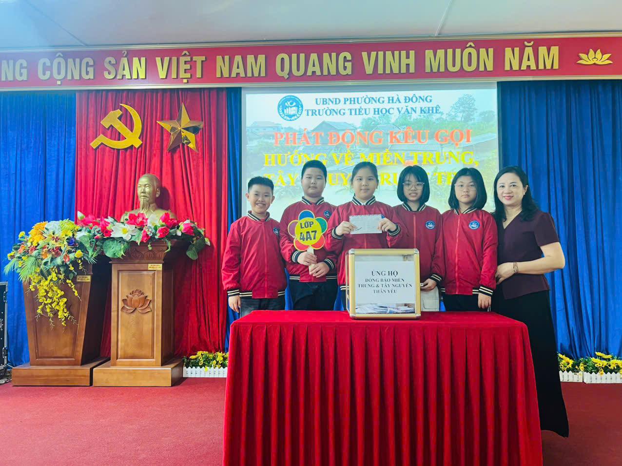Trước những thiệt hại nặng nề do thiên tai gây ra tại các tỉnh miền Trung – Tây Nguyên, tập thể cán bộ, giáo viên, nhân viên, phụ huynh và học sinh nhà trường đã phát huy truyền thống nhân ái, tinh thần đoàn kết, chung tay hưởng ứng chương trình “Ủng hộ lũ lụt – Hướng về miền Trung, Tây Nguyên thân yêu” với tất cả tấm lòng sẻ chia và trách nhiệm cộng đồng. Trong 5 ngày từ ngày 05/12 đến hết ngày 10/12 kết quả: 1. Ủng hộ đồng bào miền Trung – Tây Nguyên bị lũ lụt do PH và các con HS toàn trường được: 101.972.000 đồng Trong đó: 13.850.000 đồng phụ huynh chuyển khoản trực tiếp tới Ủy ban Mặt trận Tổ quốc phường Hà Đông. 88.122.000 đồng qua cô giáo chủ nhiệm lớp. Cô Lê Thị Phi Nga – Tổng phụ trách Đội và cô Dương Thị Vân thay mặt nhà trường trao trực tiếp tới đồng chí Nguyễn Đức Chí – Phó Chủ tịch UB MTTQ, Chủ tịch Công đoàn vào chiều ngày 10/12. Đây là tình cảm chân thành, xuất phát từ tấm lòng vàng của Quý vị phụ huynh và các em học sinh. Tình cảm của Quý PH sẽ phần nào giúp đồng bào vùng thiên tai sớm khắc phục khó khăn, ổn định cuộc sống.