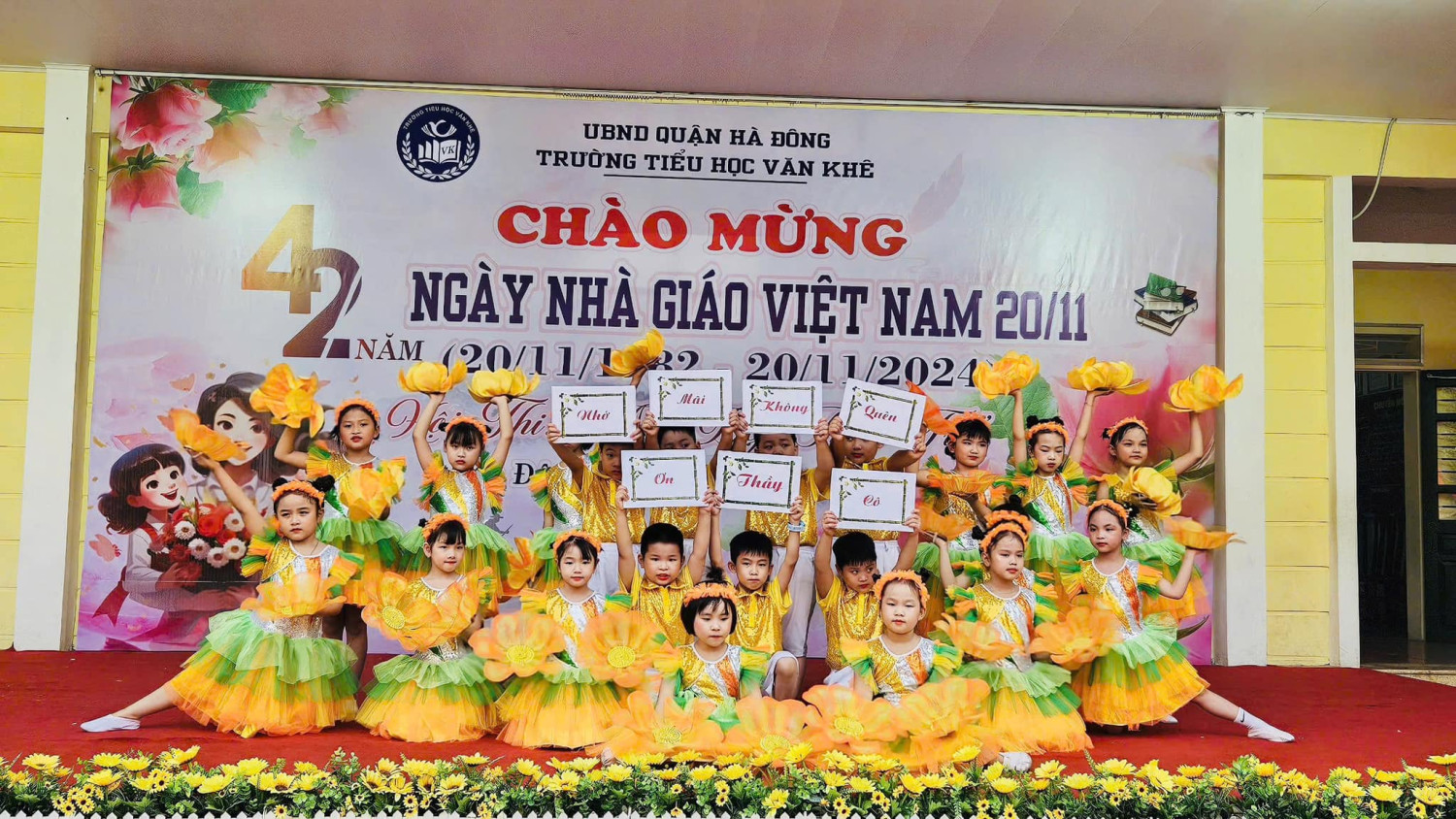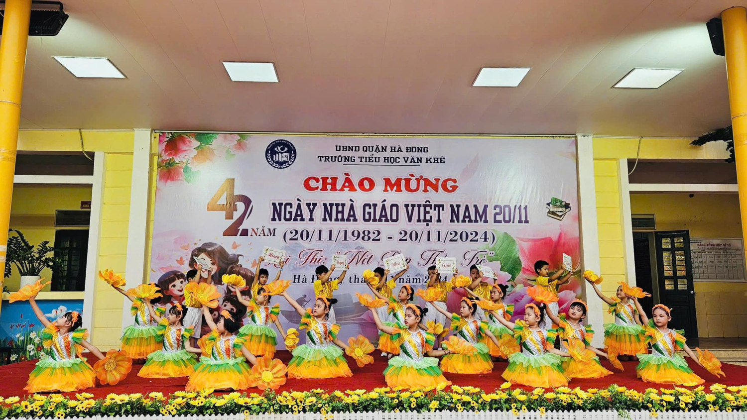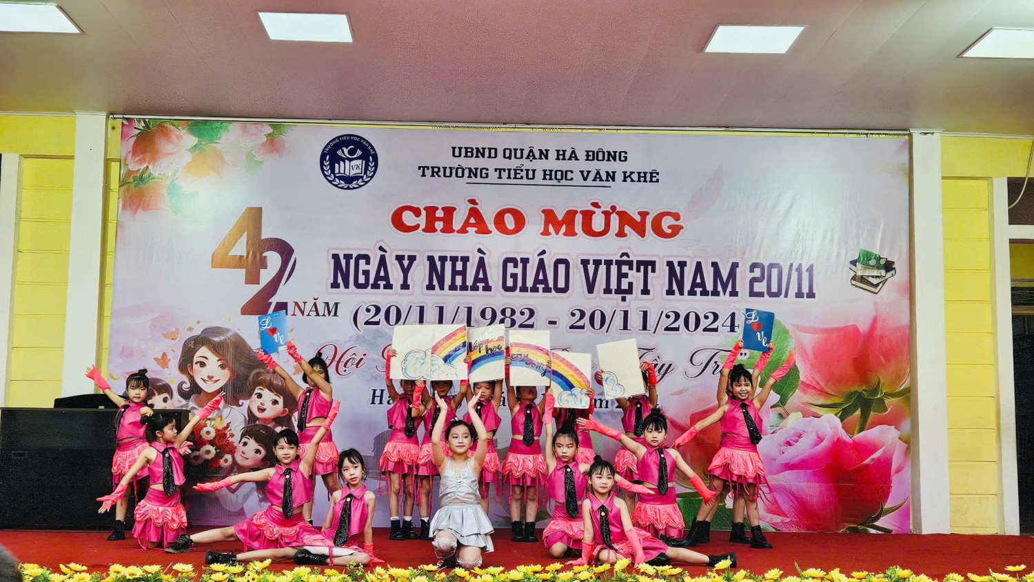 Hoà chung không khí chào mừng ngày Nhà giáo Việt Nam 20-11. Hôm nay, ngày 13/11/2024, trường Tiểu học Văn Khê tổ chức "Hội thi Nét đẹp thầy trò"cho 3 khối lớp 3;4;5 Với tài năng, sự đổi mới và không ngừng sáng tạo mỗi tiết mục được thể hiện đều để lại dấu ấn riêng cho BGK và người xem. Đây thực sự là một hoạt động thiết thực và đầy ý nghĩa. Khi các em học sinh được gửi đến thầy cô lời ca, tiếng hát, điệu múa của mình bằng tất cả tấm lòng trân quý. Dưới đây là một số hình ảnh các tiết mục văn nghệ của các lớp: