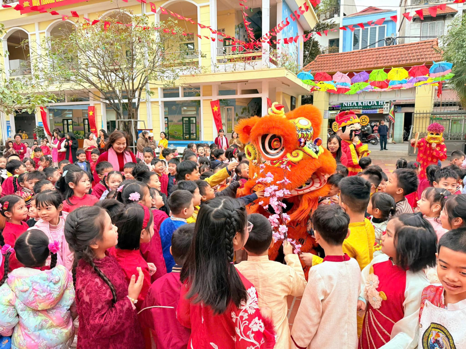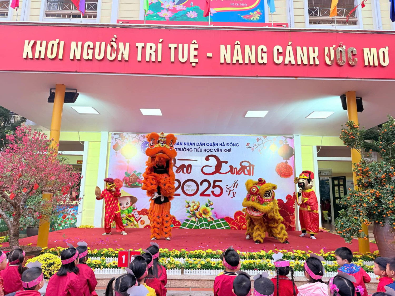 3/2/2025 (tức mồng 6 Tết Ất Tỵ) Thầy trò Hân hoan trở lại trường sau kỳ nghỉ Tết. Những gương mặt rạng ngời, đôi mắt ánh lên niềm vui, các em học sinh xúng xính trong trang phục áo dài đủ màu sắc sặc sỡ. Những nụ cười sáng khoái khi các con được giao lưu với chú Lân với Thần Tài, ông Địa, các tiết mục văn nghệ, giao lưu câu hỏi nhận quà,…Tất cả, tất cả đã làm nên một không khí XUÂN MỚI TRÀN NGẬP NIỀM VUI VÀ HẠNH PHÚC! Xin mời quý vị cùng Hân hoan chào đón Xuân cùng thầy trò em ạ!