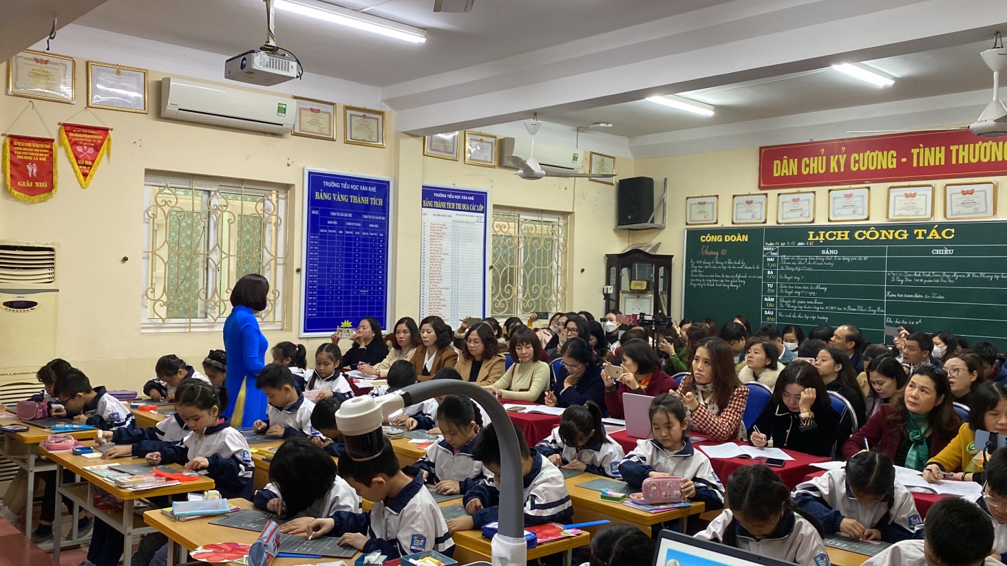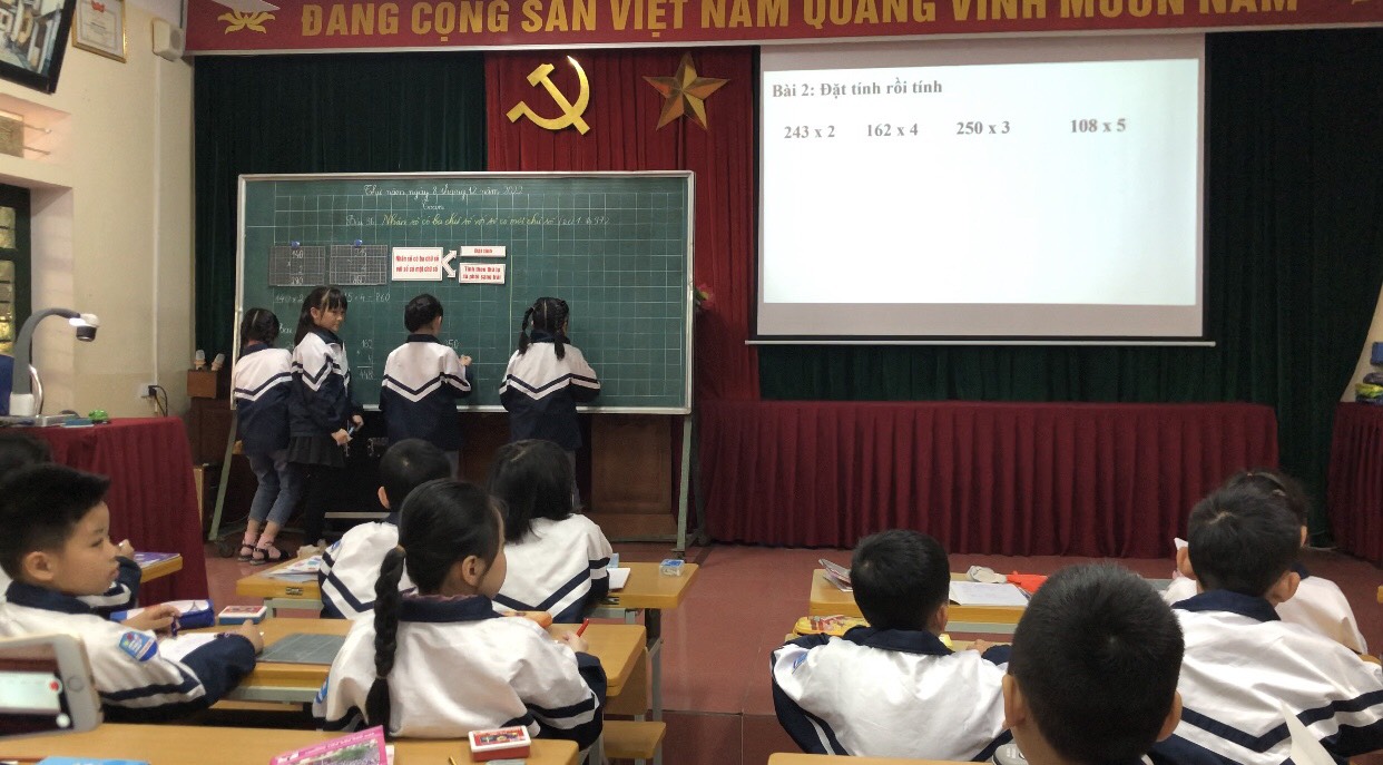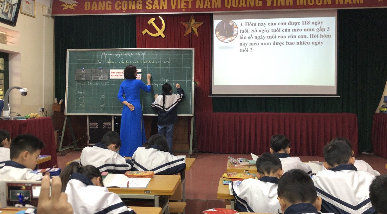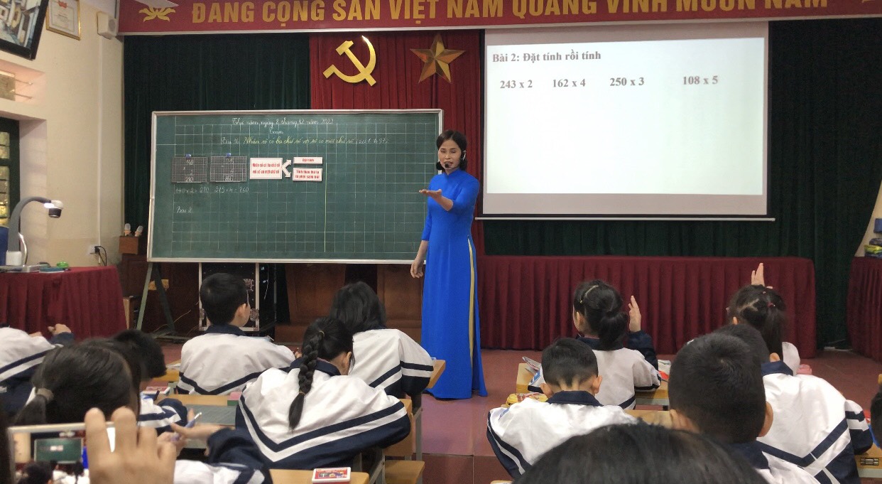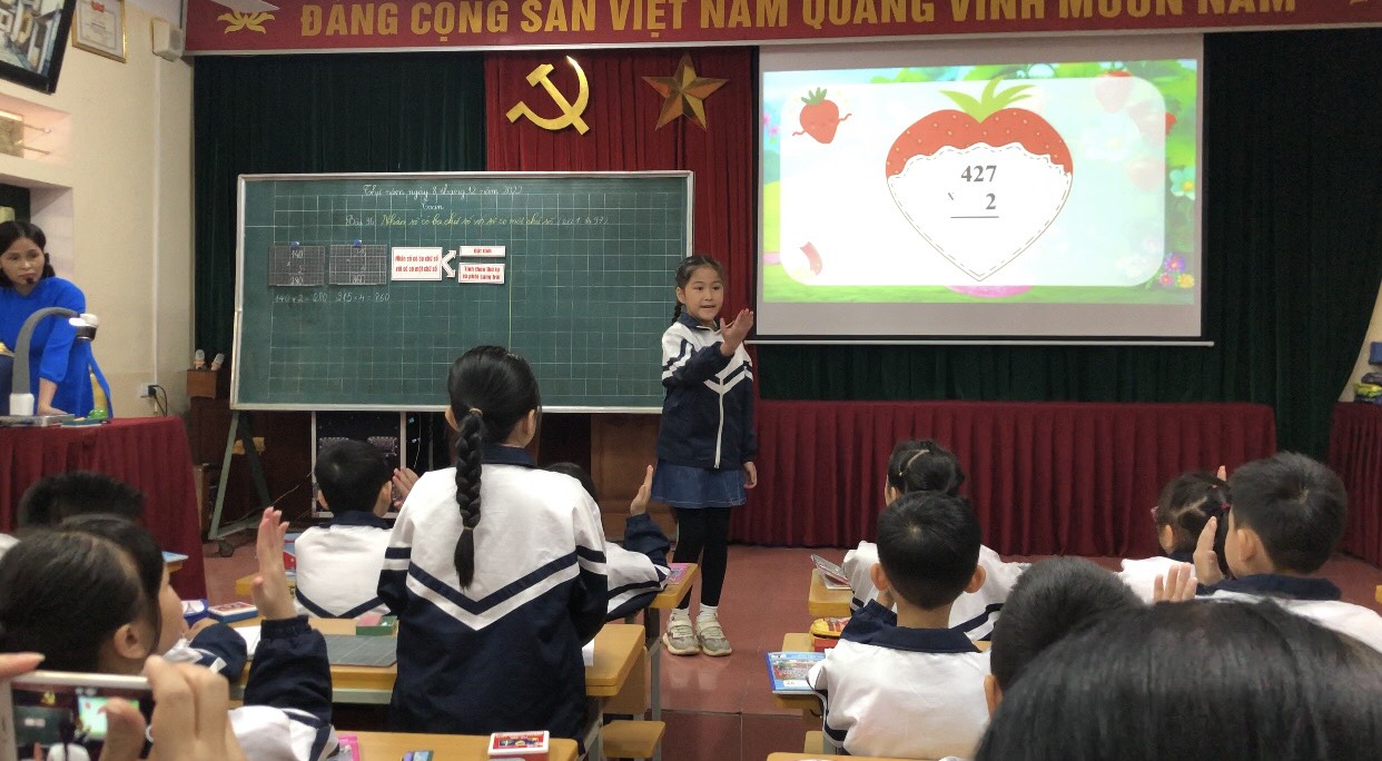 Ngày 08/12/2022, Trường Tiểu học Văn Khê đã dạy một tiết chuyên đề cấp Quận về môn toán lớp 3. Bài “Nhân một số có ba chữ số với một số có một chữ số” do cô giáo Đặng Thị Tỉnh thể hiện tại lớp 3D. Dự và chỉ đạo có các đồng chí chuyên viên phòng giáo dục, các đồng chí đại diện Ban giám hiệu và giáo viên trực tiếp giảng dạy lớp 3 các trường Tiểu học trên địa bàn Quận Hà Đông. Trong tiết dạy, giáo viên tổ chức, hướng dẫn để học sinh tự tìm hiểu, chia sẻ, nêu ý kiến của mình, giáo viên đã truyền tải nội dung đầy đủ đến học sinh. Bằng câu hỏi gợi mở giáo viên giúp học sinh tư duy, phát triển năng lực, bộc lộ khả năng và khám phá kiến thức mới. Đặc biệt, giáo viên đã ứng dụng hiệu quả công nghệ thông tin, lựa chọn những hình ảnh, thông tin chính xác, phù hợp dựa trên ý tưởng một chuyến tham quan trải nghiệm tại trang trại. Mỗi hoạt động là một thử thách: Chăm sóc vườn cây - Chăm sóc vật nuôi và thu hoạch nông sản để các em tìm hiểu nội dung bài. Học sinh được trải nghiệm thực tế. Tiết học toán trở nên thú vị đúng theo tinh thần: Học mà chơi, chơi mà học. Qua đó giúp học sinh hứng thú học tập, ham muốn khám phá, phát huy tính tích cực, sáng tạo, say mê, yêu thích toán học. Sau khi dự giờ, cán bộ, giáo viên đã trao đổi thảo luận, chia sẻ về tiết dạy. Các ý kiến đã tập trung vào phân tích các hoạt động học của học sinh, tìm ra những khó khăn mà học sinh gặp phải, để từ đó giáo viên điều chỉnh cách tổ chức các hoạt động dạy học để giúp học sinh học tập tốt hơn, hiệu quả hơn. Tiết dạy thành công có sức lan tỏa và được áp dụng thực tế trong quá trình dạy của các thầy cô giáo đang tiếp cận với chương trình sách giáo khoa mới.
