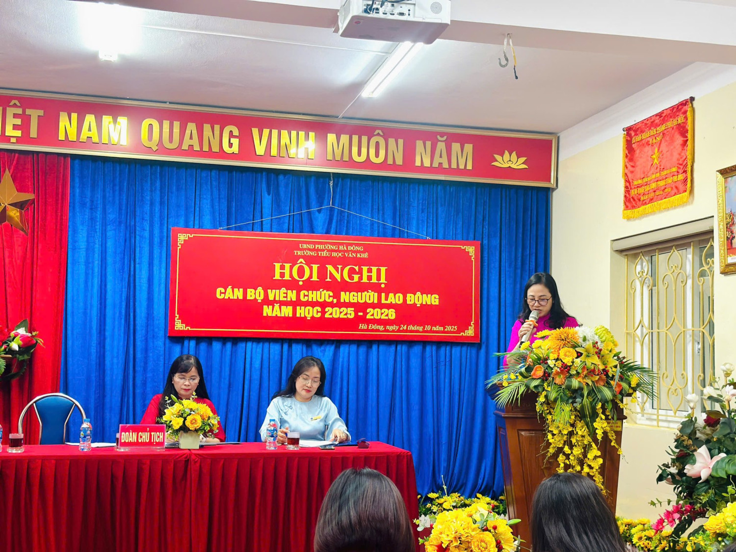 Hôm nay, ngày 24 tháng 10 năm 2025, tập thể CB, GV, NV trường Tiểu học Văn Khê long trọng tổ chức Hội nghị Công chức, Viên chức, Người lao động (Năm học 2025-2026) nhằm đánh giá, tổng kết những kết quả đạt được trong năm học 2024 - 2025 và đề ra phương hướng, nhiệm vụ cho năm học mới. Hội nghị diễn ra trong không khí vui tươi cùng những chia sẻ tâm huyết và chỉ tiêu thi đua với biểu quyết nhất trí cao của hội nghị khẳng định tinh thần ĐOÀN KẾT, TRÁCH NHIỆM cùng vượt qua mọi khó khăn để thực hiện thắng lợi nghị quyết đề ra. Cuối hội nghị đồng chí Bí thư Đảng bộ Trần Thị Quyên gửi lời cảm ơn, lời chúc sức khoẻ, hạnh phúc, thành công tới toàn thể các đồng chí, đồng nghiệp đồng thời kêu gọi toàn thể nhà trường cùng Quyết Tâm thực hiện năm học mới với KỶ CƯƠNG - SÁNG TẠO - ĐỘT PHÁ - PHÁT TRIỂN!