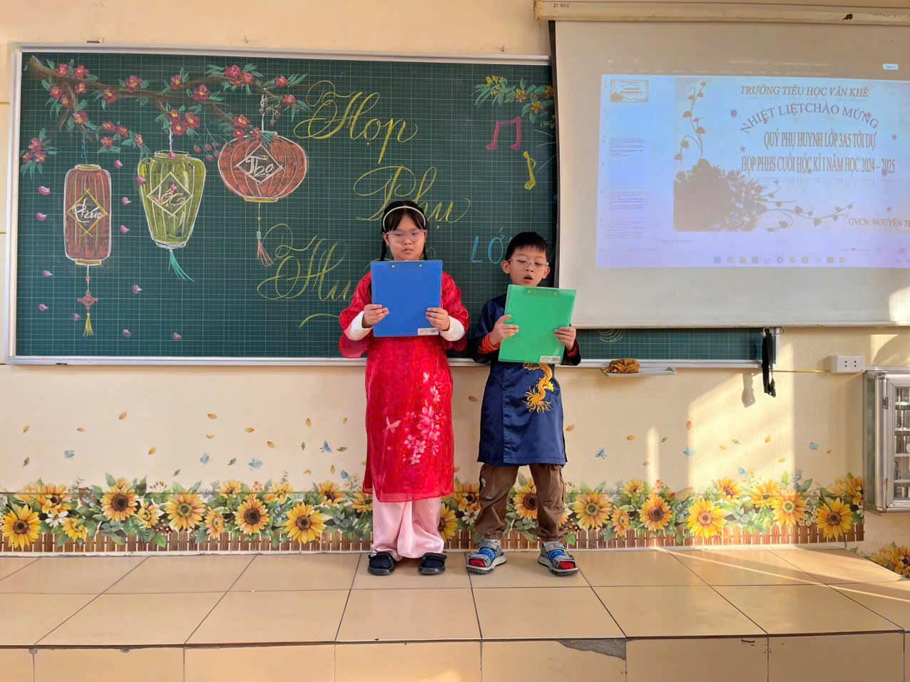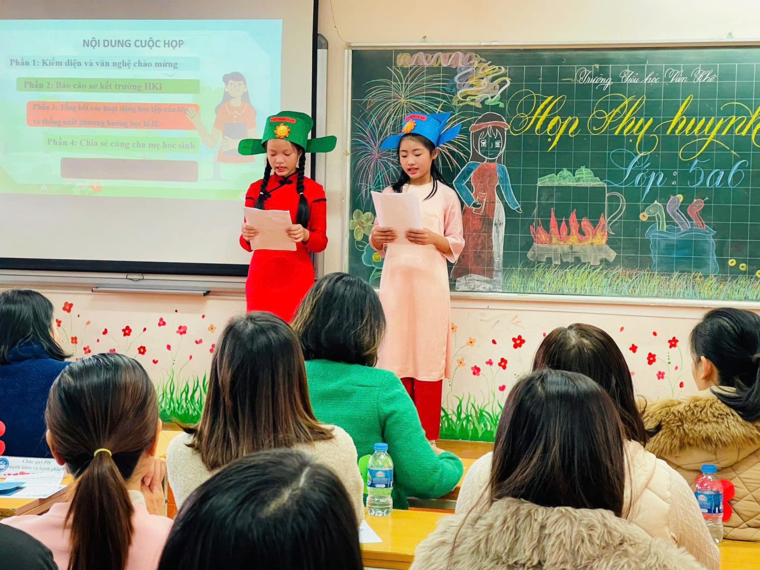 Chiều nay, ngày 12/1/2025 tại trường Tiểu học Văn Khê đã diễn ra cuộc họp phụ huynh tổng kết học kì 1 năm học 2024 - 2025. Mỗi lớp học đều được các cô giáo chuẩn bị kĩ lưỡng, cùng các hoạt động vui tươi nhằm giúp các con thể hiện khả năng, bản lĩnh bên cạnh đó không thể không kể đến những hoạt động trao yêu thương - thấu hiểu nhằm tạo mối liên kết chặt chẽ giữa gia đình và nhà trường. Trong buổi họp, các bậc phụ huynh được nhìn lại chặng đường 5 tháng học tập của các con và lắng nghe những thành quả các con đã nỗ lực, phấn đấu, đạt được. Để đạt được thành quả đó một phần lớn nằm ở sự nỗ lực của các con, sự quan tâm sát sao của thầy cô giáo và cả sự đôn đốc, khích lệ từ phía Quý phụ huynh. Thay mặt BGH nhà trường cô Trần Thị Quyên - Bí thư Chi bộ - Hiệu trưởng nhà trường xin gửi lời cảm ơn, sự tri ân sâu sắc đến quý phụ huynh đã luôn tin tưởng và đồng hành cùng nhà trường trong mọi hoạt động. Xin chúc các bạn học sinh có học kì 2 với thật nhiều trải nghiệm đáng nhớ.