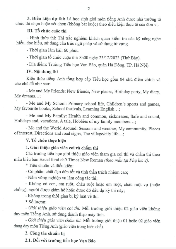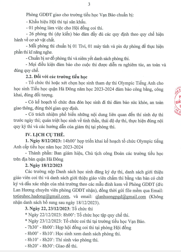 Kế hoạch: Tổ chức Olympic Tiếng Anh cấp Tiểu học quận Hà Đông năm học 2023-2024