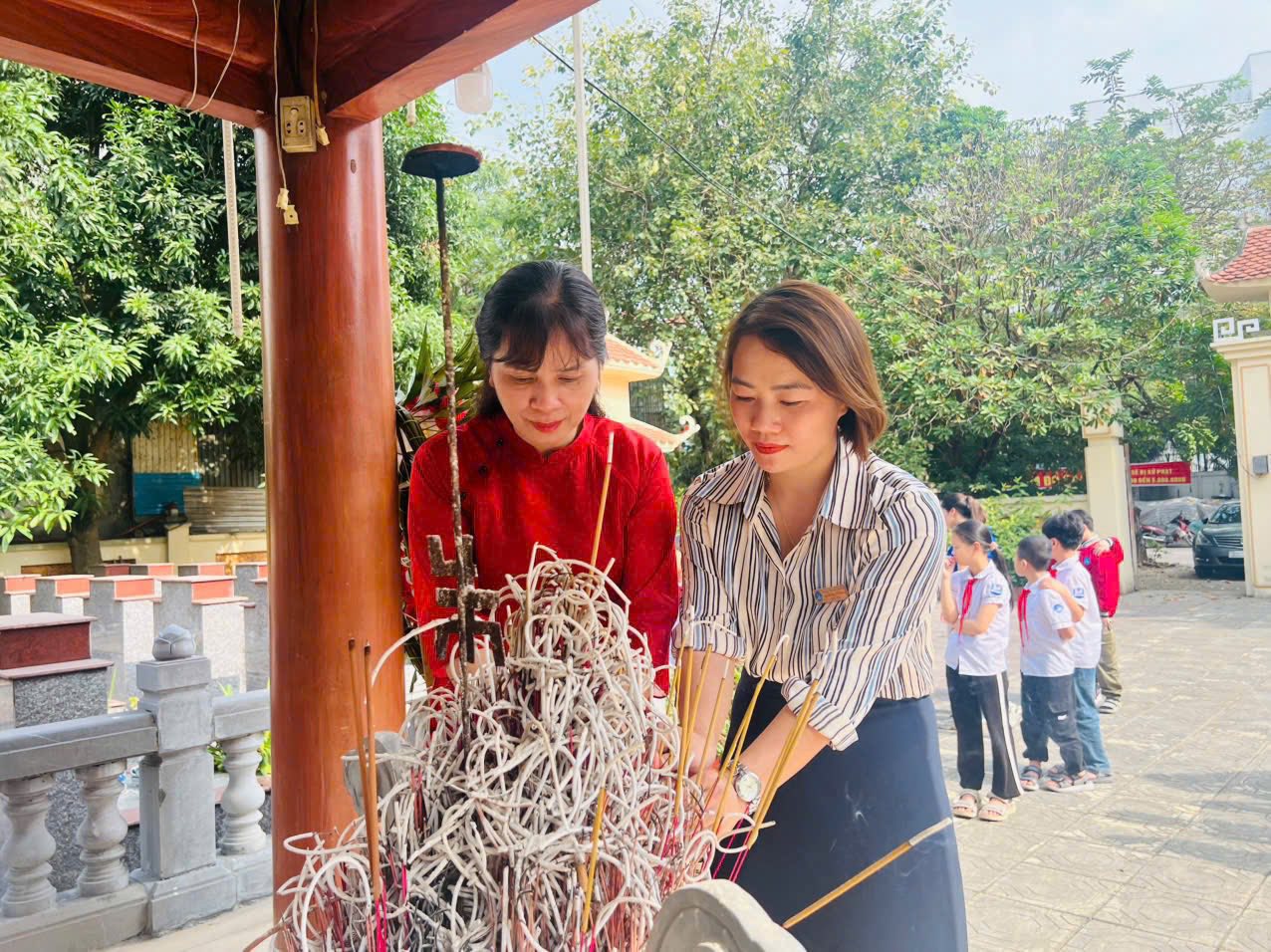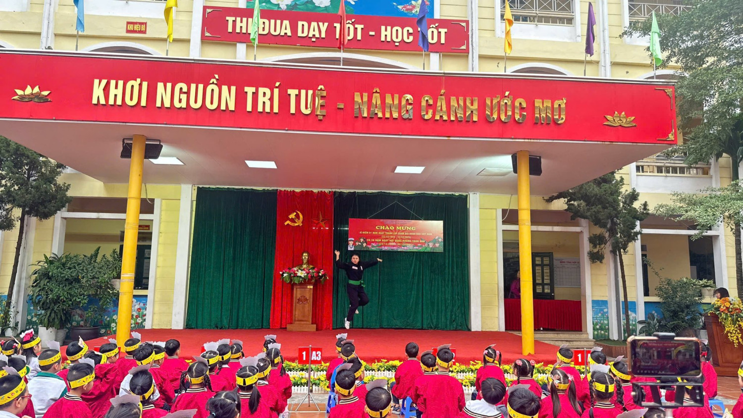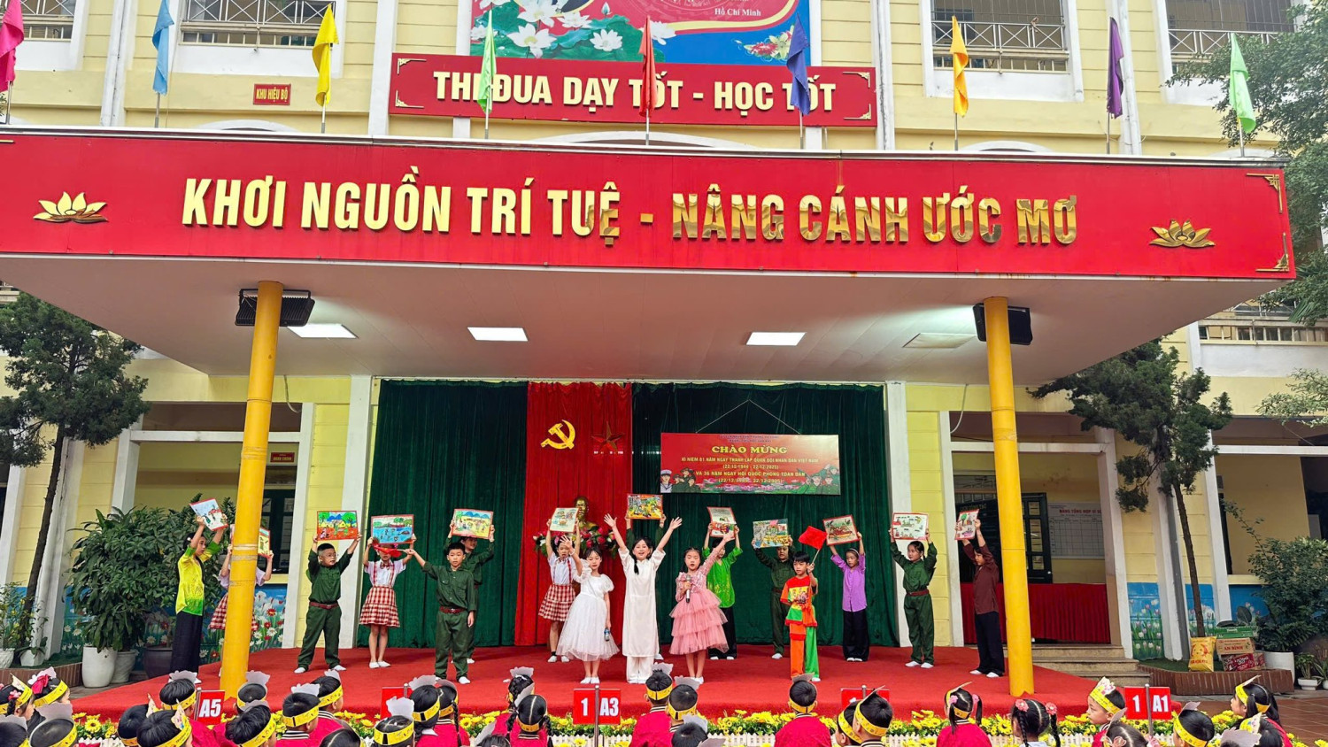 Trong không khí trang nghiêm của những ngày tháng Mười Hai lịch sử, Trường Tiểu học Văn Khê đã long trọng tổ chức các hoạt động kỷ niệm Ngày thành lập Quân đội Nhân dân Việt Nam – đội quân anh hùng từ nhân dân mà ra, vì nhân dân mà chiến đấu. Đây là dịp ý nghĩa để thầy và trò cùng ôn lại truyền thống vẻ vang, bồi đắp lòng yêu nước và niềm tự hào dân tộc cho các em học sinh. Trong khuôn khổ chương trình, nhà trường đã trao giải Nhất và giải Xuất sắc cho các tập thể lớp có phần thể hiện ấn tượng, giàu cảm xúc trong Hội thi Kể chuyện chào mừng ngày 22/12. Những câu chuyện giản dị mà sâu lắng đã khắc họa sinh động hình ảnh người lính Cụ Hồ kiên trung, bất khuất, để lại nhiều dư âm đẹp trong lòng thầy cô, phụ huynh và học sinh. Buổi lễ vinh dự được đón ông Nguyễn Viết Hằng – Nguyên Chủ tịch Hội Cựu chiến binh La Khê, phường Hà Đông đến giao lưu, chia sẻ. Những câu chuyện đời lính mộc mạc, chân thành của bác không chỉ giúp các em học sinh hiểu hơn về lịch sử, mà còn gieo vào lòng các em sự kính trọng, lòng biết ơn và niềm tự hào sâu sắc về truyền thống Quân đội Nhân dân Việt Nam. Đại diện nhà trường, ông Bùi Công Tuyên cùng bà Đỗ Thị Thùy Linh đã trân trọng dâng hoa tri ân bác Nguyễn Viết Hằng, thay cho tình cảm kính trọng và lòng biết ơn sâu sắc của tập thể cán bộ, giáo viên, phụ huynh và học sinh nhà trường đối với những cống hiến của thế hệ cha anh. Tiếp nối ý nghĩa ấy, đại diện phụ huynh và nhà trường đã trao quà chúc mừng các tiết mục đạt giải Xuất sắc và giải Nhất, ghi nhận sự nỗ lực, sáng tạo và tinh thần học tập nghiêm túc của các em học sinh trong hành trình tìm hiểu, gìn giữ và lan tỏa truyền thống vẻ vang của dân tộc. Cùng ngày, đại diện nhà trường đã đến Nghĩa trang liệt sĩ cũ La Khê dâng hương tưởng niệm, thành kính tri ân những anh hùng liệt sĩ đã hiến dâng trọn đời mình cho độc lập, tự do của Tổ quốc. Chuỗi hoạt động kỷ niệm không chỉ là lời tri ân sâu sắc đối với các thế hệ cha anh, mà còn là bài học giáo dục truyền thống đầy ý nghĩa, góp phần bồi đắp tình yêu quê hương, đất nước và khát vọng cống hiến trong trái tim các em học sinh hôm nay – những mầm non của Tổ quốc mai sau. Dưới đây là một số hình ảnh được ghi lại: