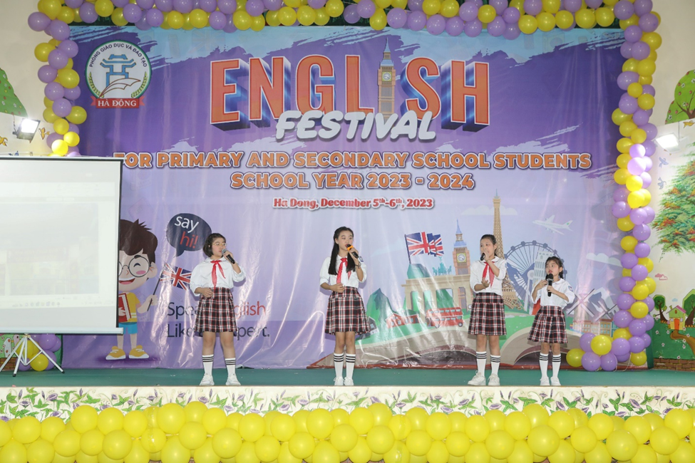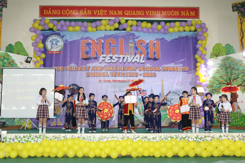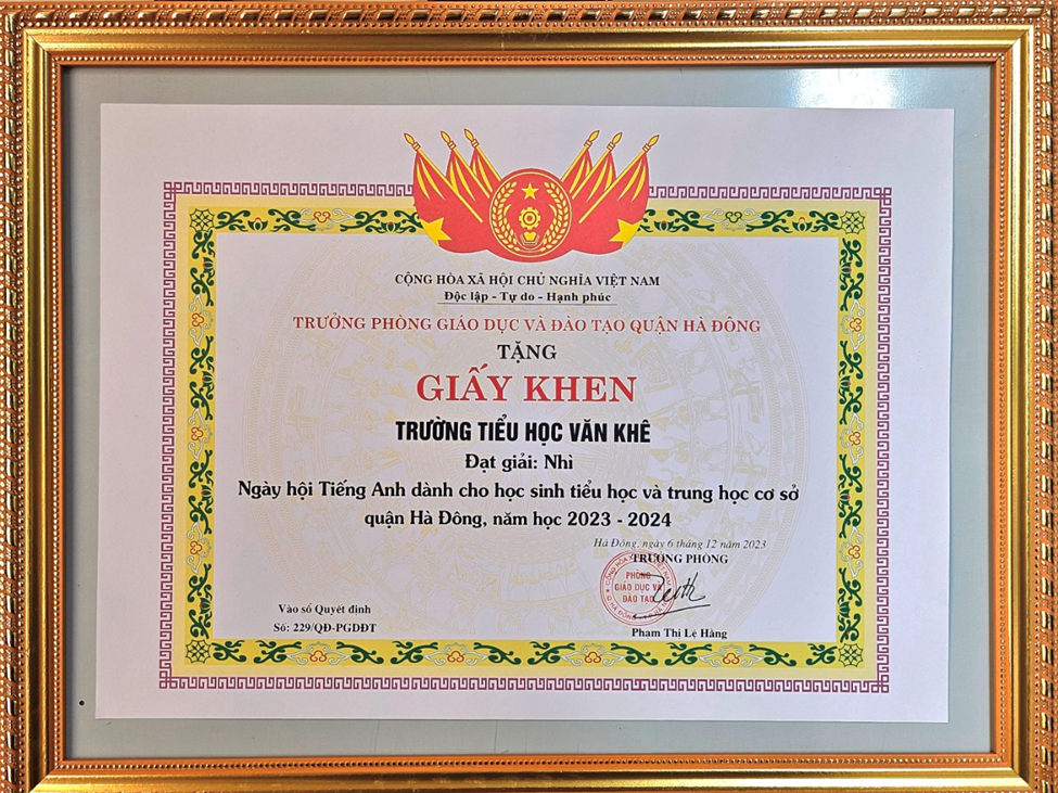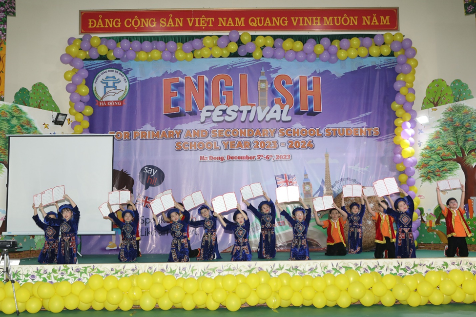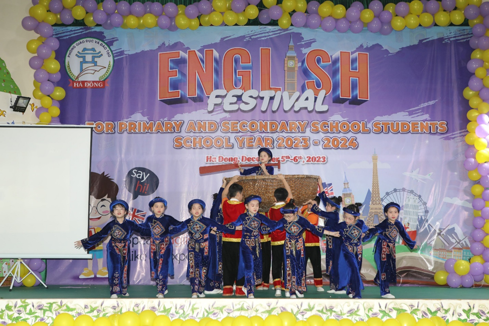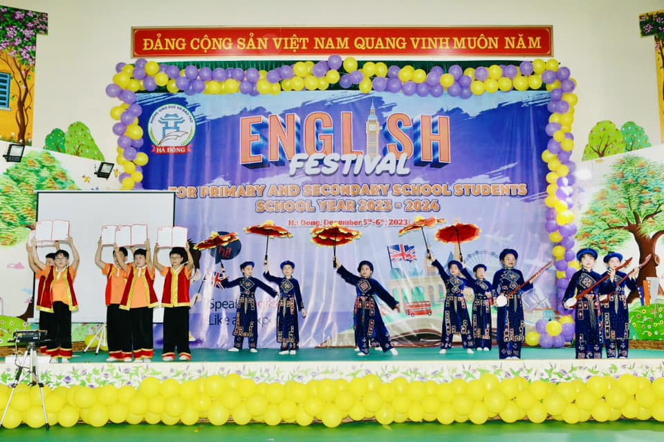 TRÁI NGỌT CHO MỘT MÙA FESTIVAL TIẾNG ANH ĐẦY Ý NGHĨA Sau chuỗi ngày miệt mài hăng say luyện tập, cô trò trường Tiểu học Văn Khê đã mang tới Ngày hội Tiếng Anh Quận Hà Đông năm học 2023 – 2024 một bức thông điệp xúc động: THE WAY TO SCHOOL Khơi nguồn từ những thước phim“chạm tới trái tim” của nhóm phóng viên VTV7, đội Festival Tiếng Anh Tiểu học Văn Khê mong muốn được chia sẻ, lan toả ngọn lửa cảm thông, yêu thương và cảm phục với các bạn học sinh vùng cao bé nhỏ nhưng đầy quyết tâm, nghị lực trên con đường gian nan đi tìm con chữ. Với cách thể hiện chân thành và nội lực, khả năng thuyết trình tự tin, ánh mắt, điệu bộ, cử chỉ mềm mại, uyển chuyển cùng cách phát âm chuẩn, mượt, hình ảnh minh hoạ sinh động, hấp dẫn, các em trong đội thi đã thực sự cháy hết mình trên sân khấu. Chúc mừng các em học sinh đã hoàn thành xuất sắc và đạt GIẢI NHÌ trong “Ngày hội Festival Tiếng Anh cấp Quận năm học 2023 – 2024 Chúc các em tiếp tục phát huy những thế mạnh của mình và gặt hái thêm nhiều thành công trong học tập. BGH nhà trường xin trân trọng cảm ơn các Quý phụ huynh, các thầy giáo, cô giáo đã hỗ trợ và đồng hành cùng các em học sinh thân yêu và mang lại vinh quang cho nhà trường. Tiểu học Văn Khê tự hào là nơi KHƠI NGUỒN TRÍ TUỆ - NÂNG CÁNH ƯỚC MƠ cho các em học sinh thân yêu.