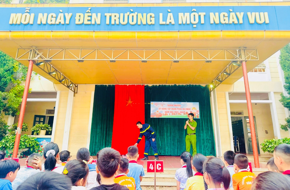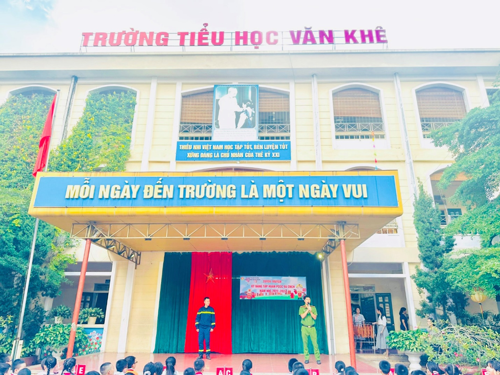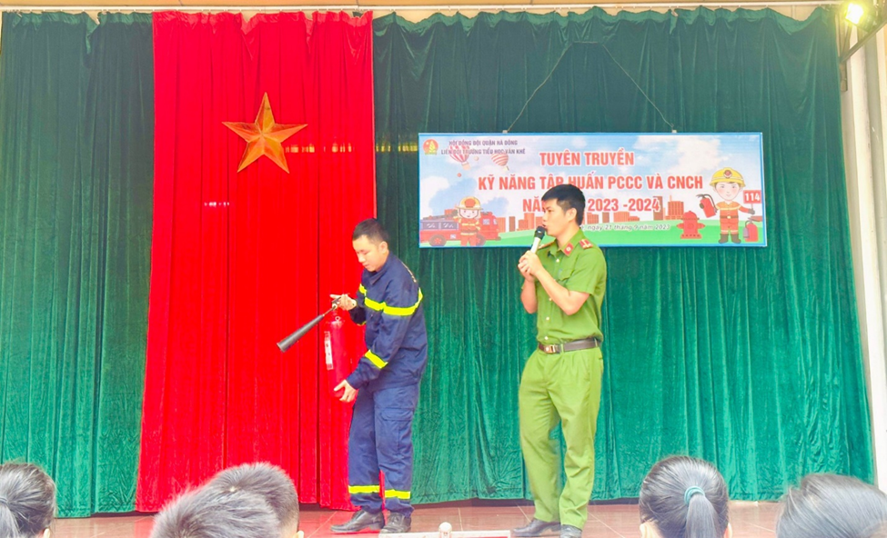 Sáng ngày 21/9/2023, trường Tiểu học Văn Khê kết hợp với đội cảnh sát PCCC công an Quận Hà Đông tổ chức tập huấn tuyên truyền PCCC và CNCH cho toàn thể cán bộ giáo viên và học sinh trong nhà trường. Buổi tuyên truyền nhằm giúp CBGVNV và HS có kỹ năng phòng cháy khi không may xảy ra hỏa hoạn với nội dung sau: