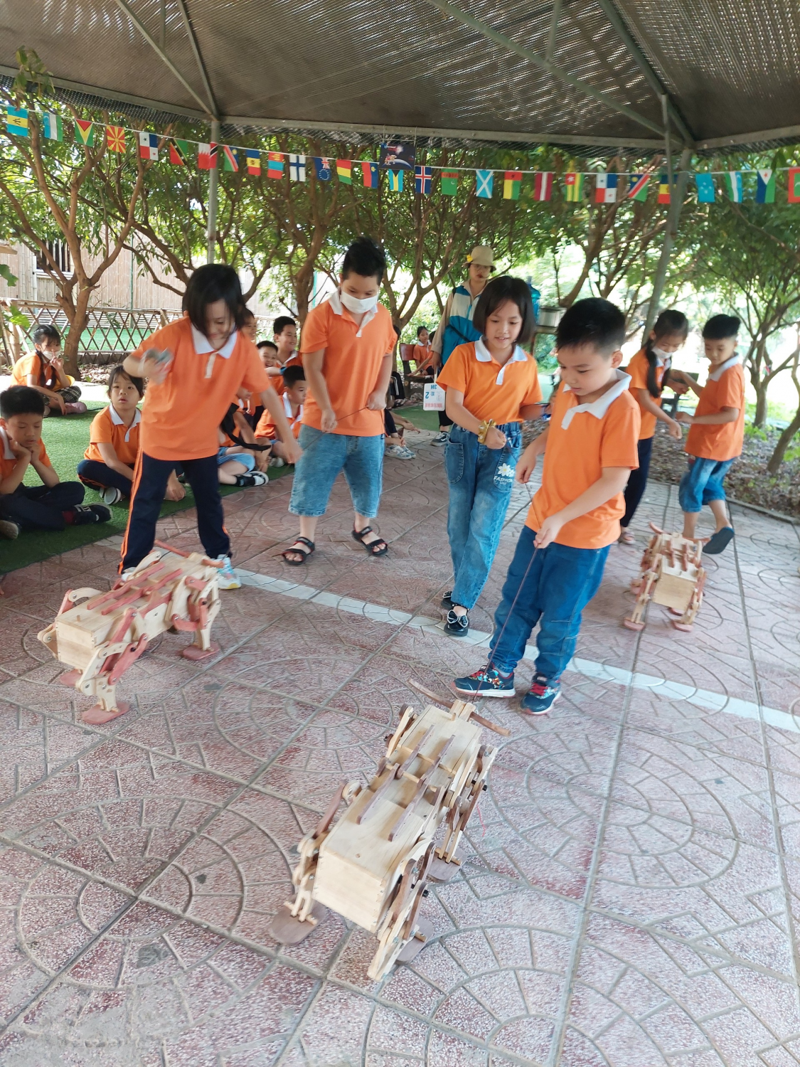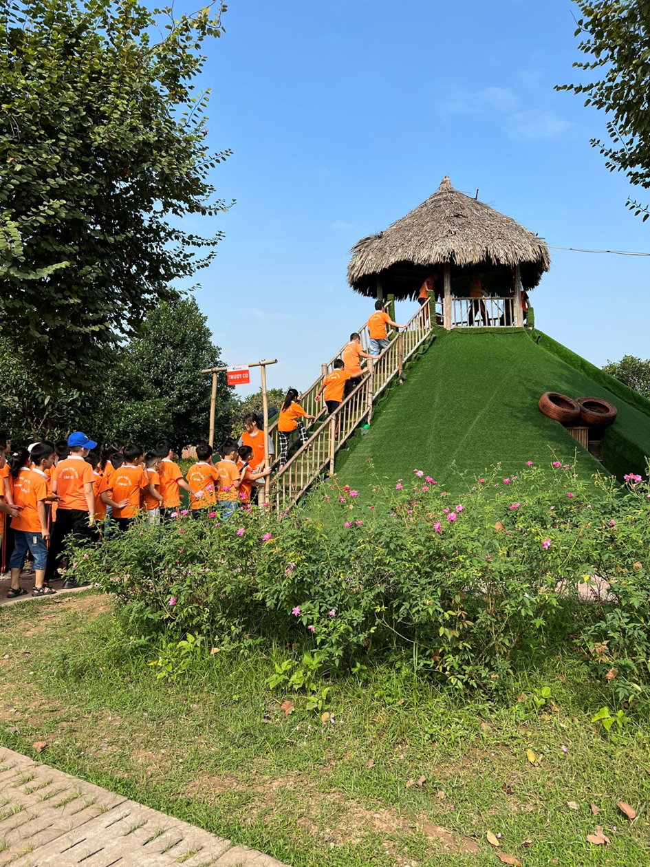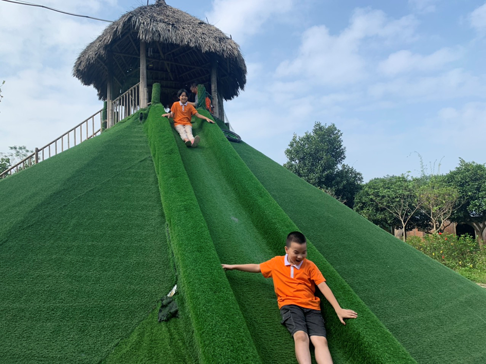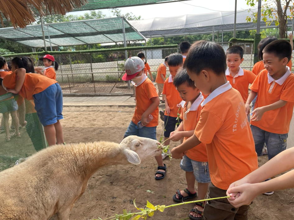 Đúng 7 giờ 15 phút các bạn học sinh bắt đầu lên xe. Chuyến du lịch được bắt đầu ngay bởi những trò chơi trên xe: trò chơi nối từ, Giải đố, Truyền vòng,…. Giao lưu văn nghệ. Sau 60 phút di chuyển, thầy cô giáo cùng các bạn học sinh đã có mặt tại trang trại. Theo sự hướng dẫn của các anh chị hướng dẫn viên du lịch. Học sinh được tham gia các trò chơi, được trải nghiệm. Khu trượt cỏ với nhiều đường trượt cao và dài khiến ai cũng thích thú trượt và cố gắng bắt được những khoảnh khắc đẹp nhất để lưu lại kỉ niệm. Trong trang trại còn nuôi rất nhiều loài động vật như: Ngựa, cừu, hươu sao, gà, dê….. Các bạn được tận mắt thấy những con vật mà mình đã được học khiến các bạn ấy thích mê nhiều bạn được các cô chú cho cỏ, lá cây để các em tự tay cho chúng ăn. Nhìn ánh mắt vui tươi, nụ cười hồn nhiên thân thiện với thế giới động vật khiến cô trò cảm thấy hạnh phúc. Một điều thú vị hơn nữa đó là các bạn được hóa thân thành những bác nông dân để tham gia các công việc của nhà nông như: trồng rau, bắt cá, nhổ cỏ tại vườn,….. Ngoài ra các bạn được chơi trò chơi như: kéo co, sasuke, nặn đất sét làm nhiều đồ vật mà các em thích để phát huy ý tưởng sáng tạo của mình….Tất cả các trò chơi đều được trải nghiệm. Đúng 11giờ 15 phút các con được ăn trưa với các món mà mình yêu thích cùng bạn bè, thầy cô và nghỉ trưa tại ngôi nhà Hoa hồng của lớp mình. Chiều ngủ dậy học sinh được xem ảo thuật và vui chơi để chuẩn bị tạm biệt nơi đây. Chuyến đi kết thúc với tiếng cười rộn rã của các bạn. Trên xe đi về, bạn nào cũng ríu rít kể cho nhau nghe những trò mình thích, trò mình đã chinh phục được. Điểm giống nhau nhất có lẽ là mong ước được quay lại nơi đây để vui chơi cùng bạn bè. Các em thầm hứa với mình phải thật ngoan, thật chăm chỉ học tập để các con có nhiều chuyến trải nghiệm thú vị, bổ ích như hôm nay.