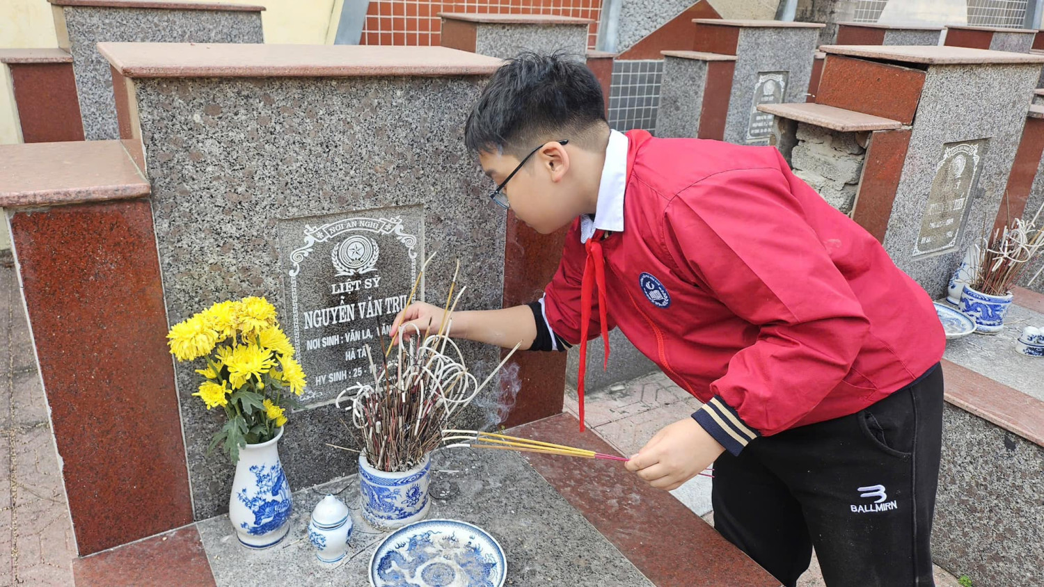 Nhân kỷ niệm 80 năm ngày thành lập Quân đội nhân dân Việt Nam và 35 năm ngày hội Quốc phòng toàn dân. Ngày 20/12/2024, BGH cùng Đoàn thanh niên và Đội thiếu niên Tiền phong Hồ Chí Minh Trường Tiểu học Văn Khê đến thăm viếng, dâng hương các anh hùng liệt sỹ tại Nghĩa trang Liệt sỹ phường La Khê. Cô trò trân trọng, thành kính lau từng tấm bia, dâng nén nhang thơm tri ân đến thế hệ cha ông đã hy sinh cho nền độc lập tự do nước nhà. Những hoạt động nhà trường tổ chức nhân Ngày thành lập Quân đội nhân dân Việt Nam 22/12 nhằm giáo dục các em học sinh truyền thống: “QUÂN ĐỘI NHÂN DÂN VIỆT NAM ANH HÙNG của DÂN TỘC ANH HÙNG”, giáo dục đạo hiếu UỐNG NƯỚC NHỚ NGUỒN, giáo dục lòng tự tôn dân tộc. Giúp các em thêm yêu quê hương đất nước đồng thời khơi gợi ý chí phấn đấu rèn luyện, vươn lên trong học tập góp phần xây dựng quê hương đất nước ta giàu đẹp, văn minh như Đảng và Bác Hồ kính yêu hằng mong ước!