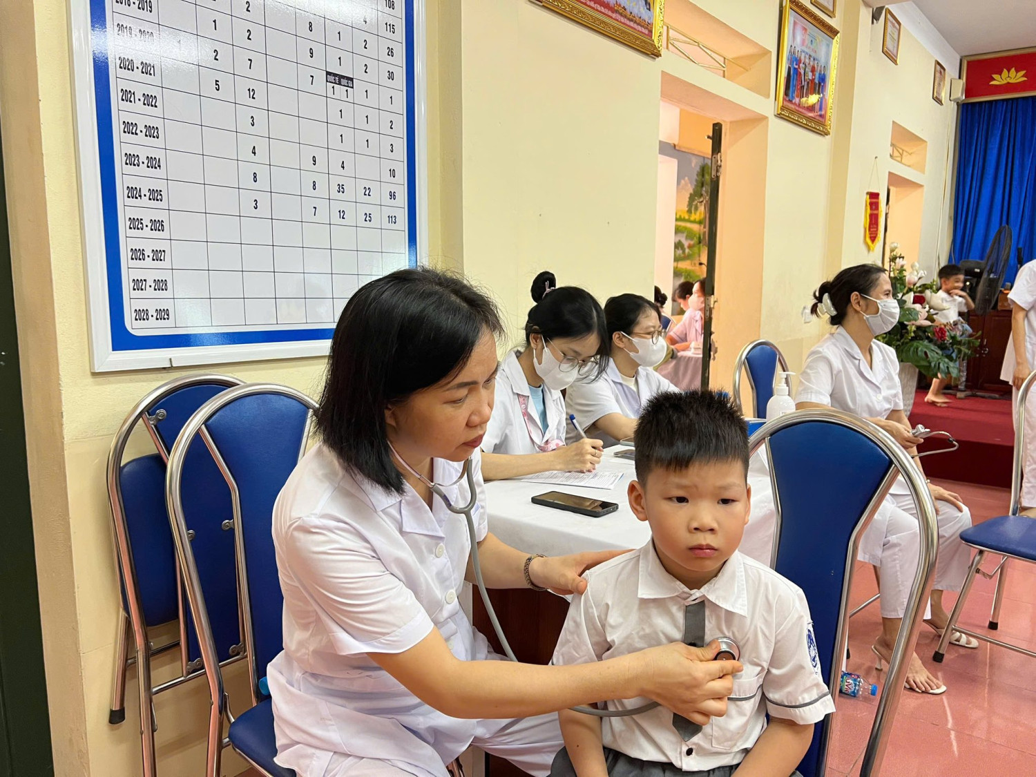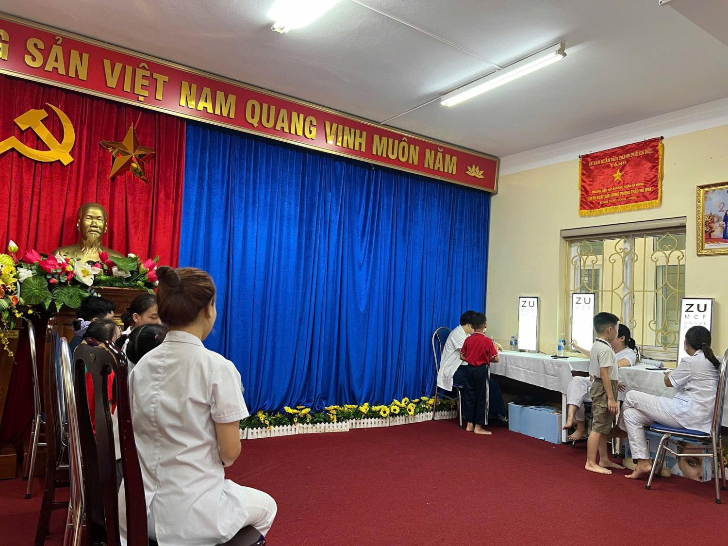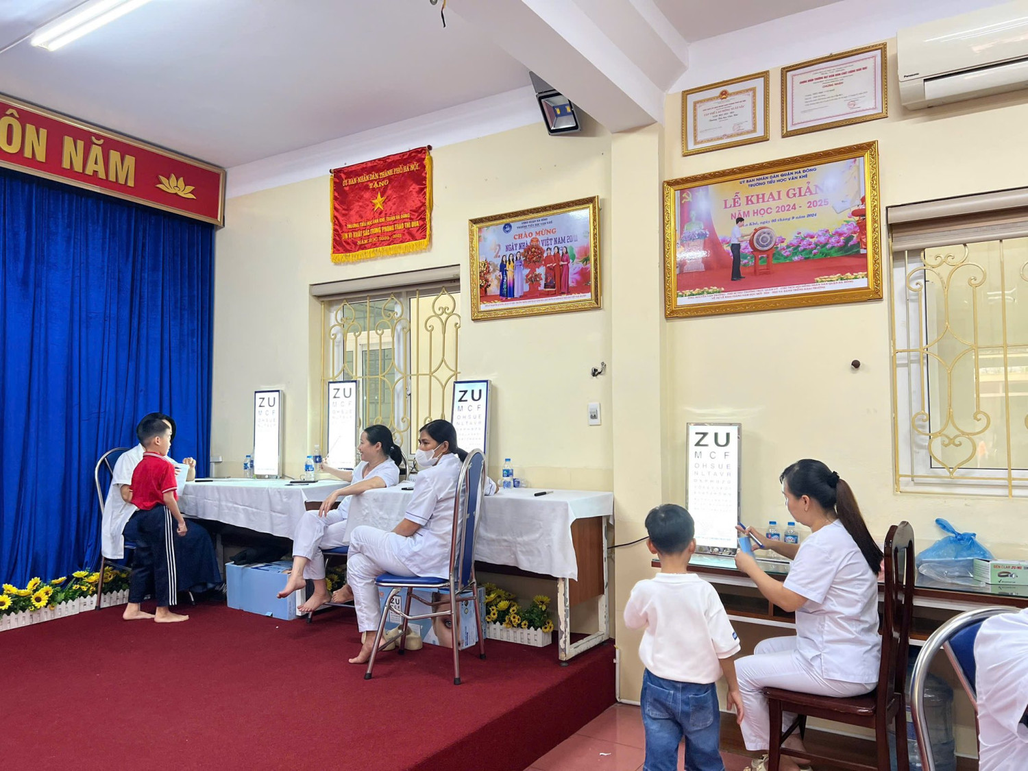 Trong hơn một ngày vừa qua - Ngày 15,16/10/2025 (thứ Tư, thứ Năm), Trường Tiểu học Văn Khê đã phối hợp cùng Trạm Y tế phường Hà Đông tổ chức khám sức khỏe định kỳ cho học sinh toàn trường. Các bác sĩ, cán bộ y tế đã tiến hành thăm khám tổng quát, đo chiều cao, cân nặng, thị lực, răng miệng và một số chỉ số cơ bản nhằm theo dõi sự phát triển thể chất của các con. Sau buổi khám, kết quả sức khỏe sẽ được nhà trường tổng hợp và thông báo kịp thời đến phụ huynh, giúp gia đình nắm bắt tình hình sức khỏe của con em mình. Các cô chú cán bộ, bác sĩ dành lời khen ngợi toàn trường nền nếp, quy củ, gọn gàng, sạch sẽ. Các con học sinh ngoan ngoãn, lễ phép và hợp tác tốt trong suốt quá trình thăm khám. Hoạt động khám sức khỏe định kỳ không chỉ góp phần bảo vệ sức khỏe học đường mà còn thể hiện sự quan tâm, phối hợp chặt chẽ giữa nhà trường – y tế và phụ huynh trong việc chăm sóc, giáo dục toàn diện cho các con. Dưới đây là một số hình ảnh được ghi nhận.